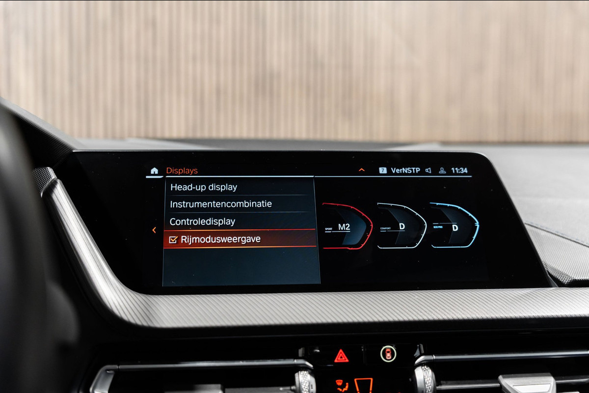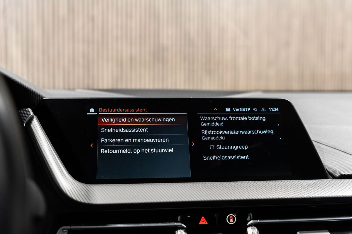 Zoals u mag verwachten van deze BMW 1-serie is hij uitgerust met een reeks aan actieve veiligheidssystemen. Veiligheid voor alles, ook als u rij- en routeinformatie wilt aflezen. De head-up display projecteert de gegevens op de vooruit en u kunt gewoon voor u blijven kijken. Tijdens de rit hebt u altijd een bijrijder, want de verkeersbord-detectie leest de borden langs de weg en projecteert ze voor u op het instrumentarium. Deze BMW 1-serie is ook behulpzaam als het gaat om een rechte koers. Het Lane-keeping systeem signaleert en corrigeert als u onbedoeld de rijstrooklijnen dreigt te overschrijden. Verder is deze auto uitgerust met accident avoidance system, hill hold functie, brake assist, vermoeidheidsherkenning en bandenspanningcontrolesysteem.