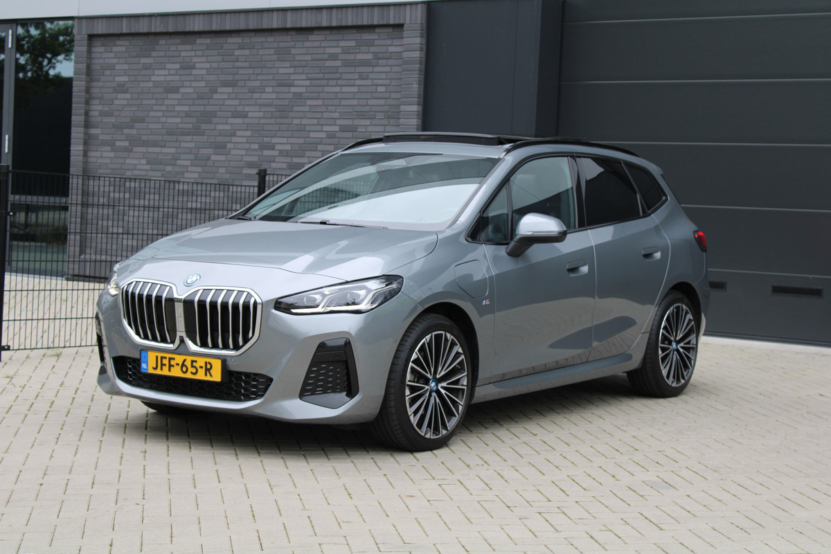 Techniek en design helemaal van nu. Kilometerstand van gisteren. Deze bijna-nieuwe BMW 2-serie Active Tourer heeft z'n nestveren afgeschud en is klaar om te vliegen. Deze BMW 2-serie Active Tourer is voorzien van een hybride motor en gebruikt dus zowel brandstof als elektriciteit. Dat betekent zuinige kilometers en toch maximale prestaties. Essentiële functies activeren gaat met één druk op de knop: bij het elektrisch bediende glazen panorama dak én de elektrisch bedienbare achterklep. De sportstoelen geven het interieur van deze 2-serie Active Tourer een super strakke en sportieve uitstraling. Ook 19 inch lichtmetalen velgen, LED koplampen, BMW M-sportpakket, adaptief dempingsysteem, donker getint glas achter en in delen neerklapbare achterbank zijn aan boord.