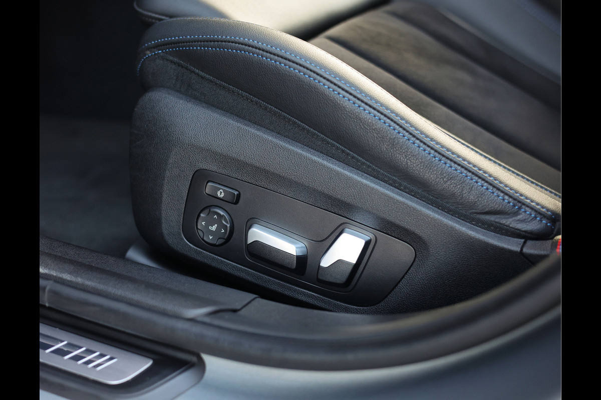 Deze praktische BMW 330e is prachtig uitgevoerd in Skyscraper grijs metallic en voorzien van het M Sport Pro-pakket. De krachtige look wordt onderstreept door alle hoogglans zwarte delen. Daarnaast is dit exemplaar smaakvol aangepast. Zo is de auto voorzien van zijskirts, een subtiele dakspoiler, M340i diffuser met uitlaten en een M340i grille. Om het sportieve plaatje compleet te maken is de auto verlaagd. Het Sensatec leder/Alcantara is eveneens prachtig uitgevoerd en wordt gecontrasteerd door een blauw stiksel. En heeft u de subtiele houten inleglijsten al opgevallen? Ongekend, wat een afwerking!