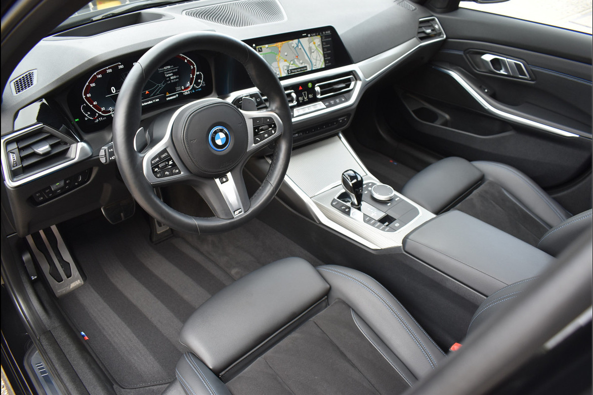 2021 BMW 330e Touring M-Sportpakket 292 Pk xDrive 08-2021 met 63 Dkm Saphire Zwart Metallic DLR Onderhouden Opties: Shadow Line (black) Laser Koplampen Panoramadak Leder M Sportstoelen M Sportpakket Int/Ext Lederen Airbag Head-Up Display Navigatie Groot Digitale Cockpit Cruise Control Adaptieve Sfeerverlichting in Kleur Instelbaar Spiegels Elektrisch Inklapbaar Stoelverwarming V 3 Zone Airco Elektrische Achterklep Keyless Entry/Start Apple Carplay Bluetooth Telefoon DAB Radio Getint Glas Achter Trekhaak Origineel Wegklapbaar Onderstel Instelbaar Dodehoek Detectie 19 Inch Breedset M Performance