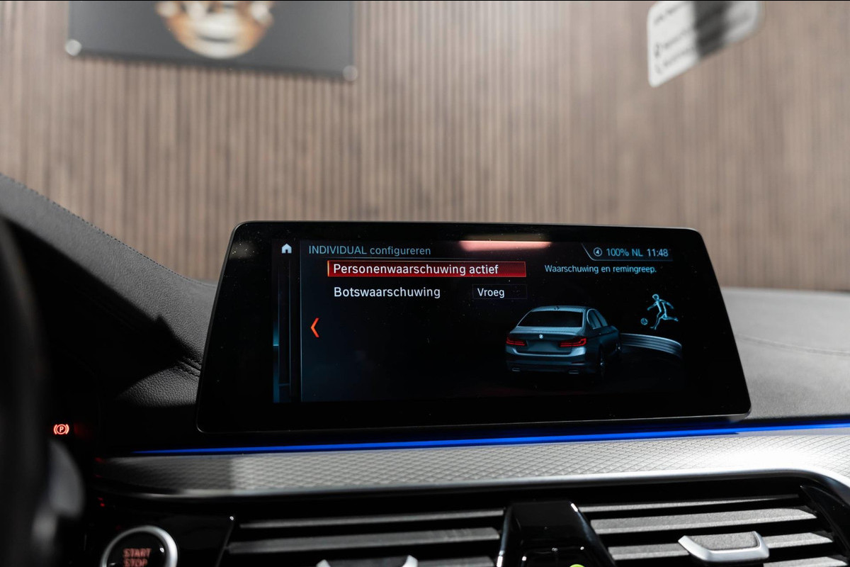 De nieuwste veiligheidssystemen komen in deze BMW 5-serie samen. Onderweg zorgt verkeersborddetectie ervoor dat u geen waarschuwingsbord mist. Met het Lane-keeping systeem gaat u nooit onbedoeld over de streep. De forward collision warning reduceert het gevaar van een botsing met een voorligger significant. Dankzij veiligheidsvoorzieningen als dodehoekdetectie, accident avoidance system, hill hold functie, brake assist en bandenspanningcontrolesysteem, bent u steeds veilig onderweg.