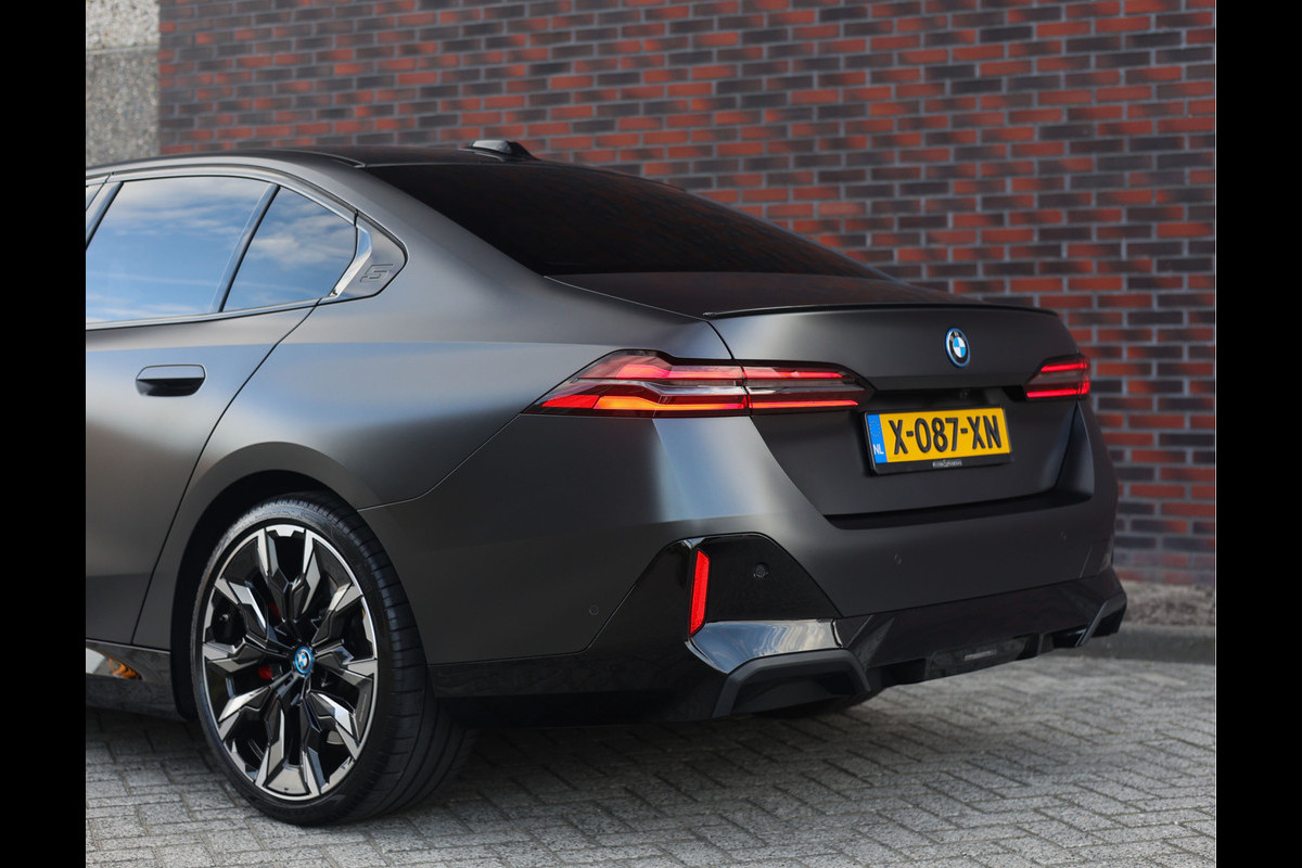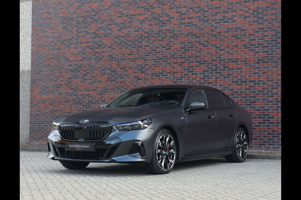In het donkere Frozen Deep Grey Metallic staat hier een sedan die direct indruk maakt door zijn krachtige en stijlvolle uitstraling. De bijzondere kleur samen met het M Sport Pro pakket geven de BMW 550e een uitgesproken sportief karakter, versterkt door het Carbon exterieurpakket, de zwarte Shadow Line details en de 21” M velgen met rode M remklauwen.
