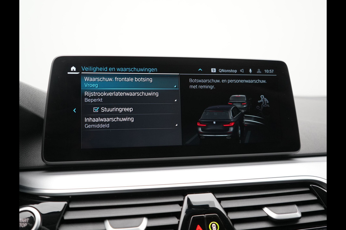 Het digitale dashboard zorgt voor een super functionele display van reisinformatie. Omdat u nou eenmaal geen ogen in uw achterhoofd heeft, is het altijd lastig om achteruit te rijden zonder brokken te maken. De achteruitrijcamera lost dat probleem op. Als u 'm vraagt 'hoe gaat het?' geeft deze auto zelf het antwoord. Via de app op uw smartphone. U checkt de meters waar u maar wilt, of activeert diverse functies alvast. Laat u onderweg niet afleiden, de bediening van het audio-installatiesysteem en ook het navigatiesysteem met harde schijf gaat met knoppen op het stuur. Natuurlijk is de audio-installatie voorzien van DAB-ontvangst. Ook over uw schouder ziet u onderweg niet alles wat er aan de achterzijde gebeurt. Daarom heeft deze BMW 5-serie Touring een achteropkomend verkeer waarschuwing. En deze auto heeft ook automatische airconditioning, lederen sportstuur, regensensor, cruise control, automatisch dimmende buitenspiegels en hifi-luidsprekersysteem als standaard uitrusting.