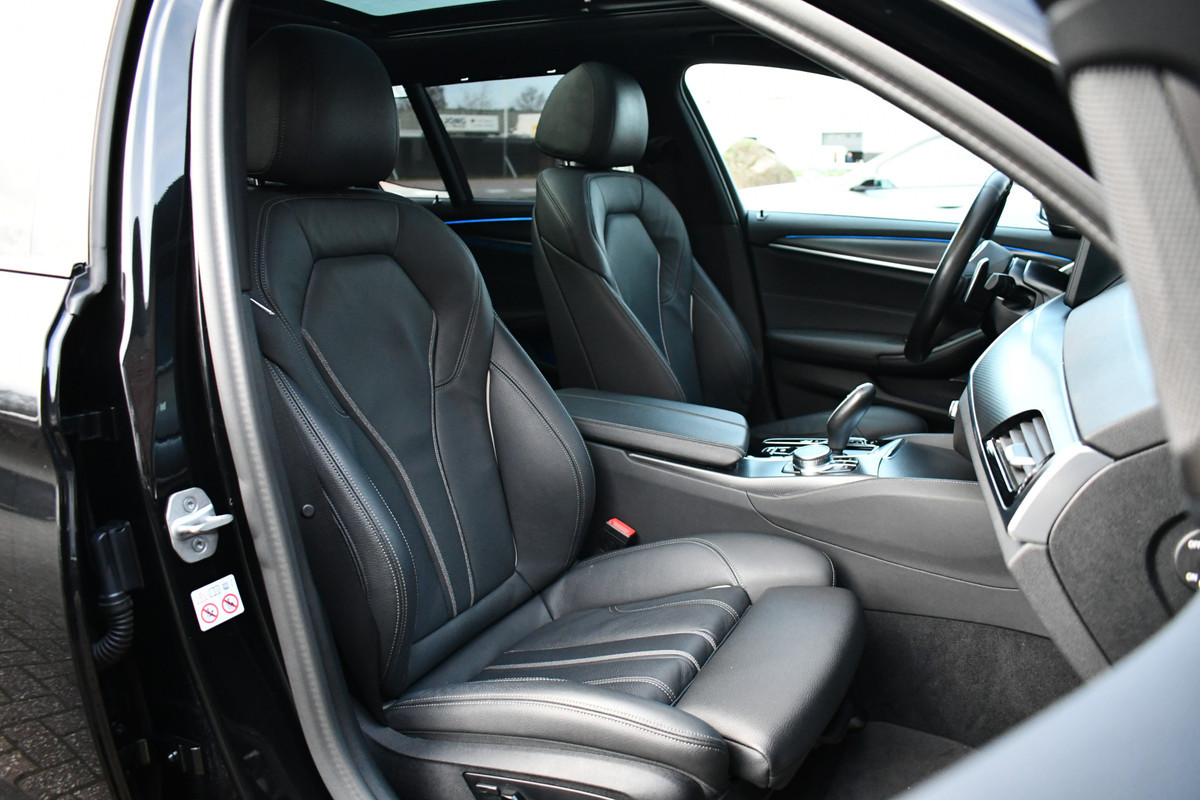 Deze volle 5-serie Touring staat binnenkort is compleet met: xDrive, M-Sportpakket, panoramadak, adaptieve cruise control (DA Plus), harman/kardon audio, 19 inch velgen, head-up display, gebarenbesturing, zwart lederen sportstoelen en compleet shadowline.