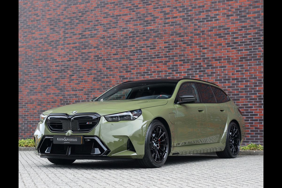 Een nieuwe BMW M5 Touring met karakter! Uitgevoerd in Individual Urban Green zet dit exemplaar zich onmiskenbaar af tegen het overwegend grijze en zwarte straatbeeld in Nederland. Het mooiste? Hij is direct leverbaar!