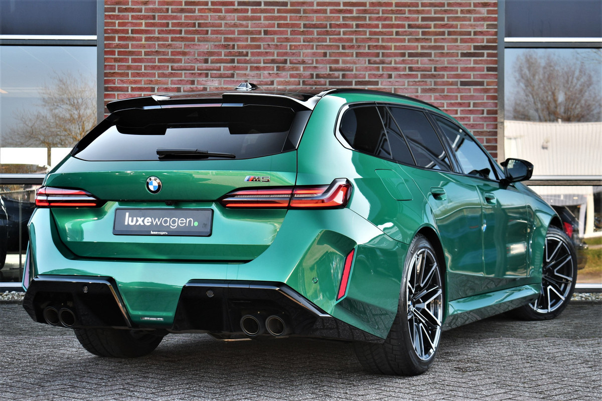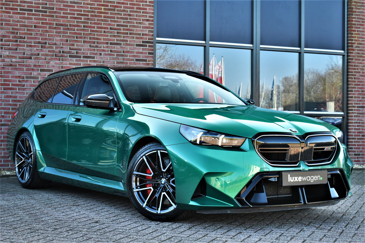 Smetteloze M5 Touring, afkomstig van BMW AG. Veel opties: panoramadak, Driving assistent profesional, M-Driverspack, 2x TV schermen achterin, Comfort-pack, alcantara hemelbekleding, carbon spiegelkappen, stoelverkoeling, stuurverwarming, achterbankverwarming, Bowers & Wilkens, etc. Reeds voorzien van klasse 4 alarmsysteem.
