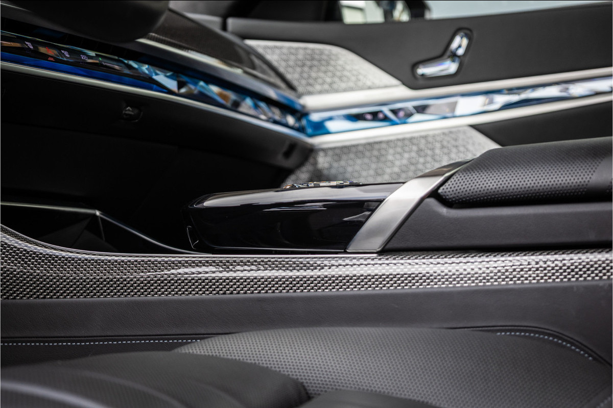 De 7 Serie is BMW's meest ambitieuze statement op het gebied van luxe en technologie — en de M760e is de meest ambitieuze uitvoering daarvan. Het Theatre Screen in de achterbank, het kristallen BMW iDrive controlepaneel van Swarovski, de Executive Lounge achterbank met beenruimte die businessclass doet verbleken, het Bowers & Wilkins Diamond surround geluidssysteem en een afwerking waarbij elk materiaal zorgvuldig is gekozen — dit is geen interieur. Dit is een rijdende penthouse.