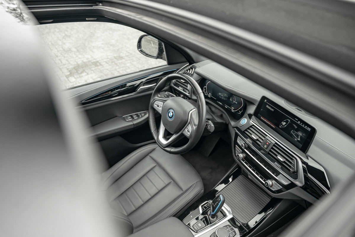 Kijk naar de onvergelijkbare vormgeving. De BMW iX3 is een elektrische auto die zijn bijzondere karakter niet voor de buitenwereld verbergt. U zult verrast zijn door de power van de elektromotor. En stil! De krachtige motor geeft deze BMW uitstekende prestaties. Even op het knopje drukken en de elektrisch bedienbare achterklep gaat open. Net zo gemakkelijk als het elektrisch bediende glazen panorama dak. Neem plaats op de comfortabele stoelen. Dankzij de elektrische bediening en het geheugen is het eenvoudig om hierin de beste zitpositie te vinden. Bij de uitrusting van deze auto horen onder meer 19 inch lichtmetalen velgen, LED koplampen, halflederen bekleding, adaptief dempingsysteem, in delen neerklapbare achterbank en LED-achterlichten.