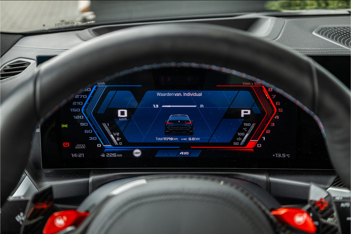 De Competition uitrusting geeft de M3 Touring zijn onmiskenbare identiteit — de agressieve M bumpers, de brede wielkasten, de 19 en 20-inch M smeedwielen voor en achter en het interieur met M sportstoelen, M stuurwiel en koolstofvezel accenten die je herinneren aan waar deze auto vandaan komt en waartoe hij in staat is. Praktisch genoeg om dagelijks te gebruiken. Scherp genoeg om sportwagens van het dubbele prijsniveau achter zich te laten op een kronkelende bergweg. En met een kofferbak die groot genoeg is voor alles wat het weekend van je vraagt.