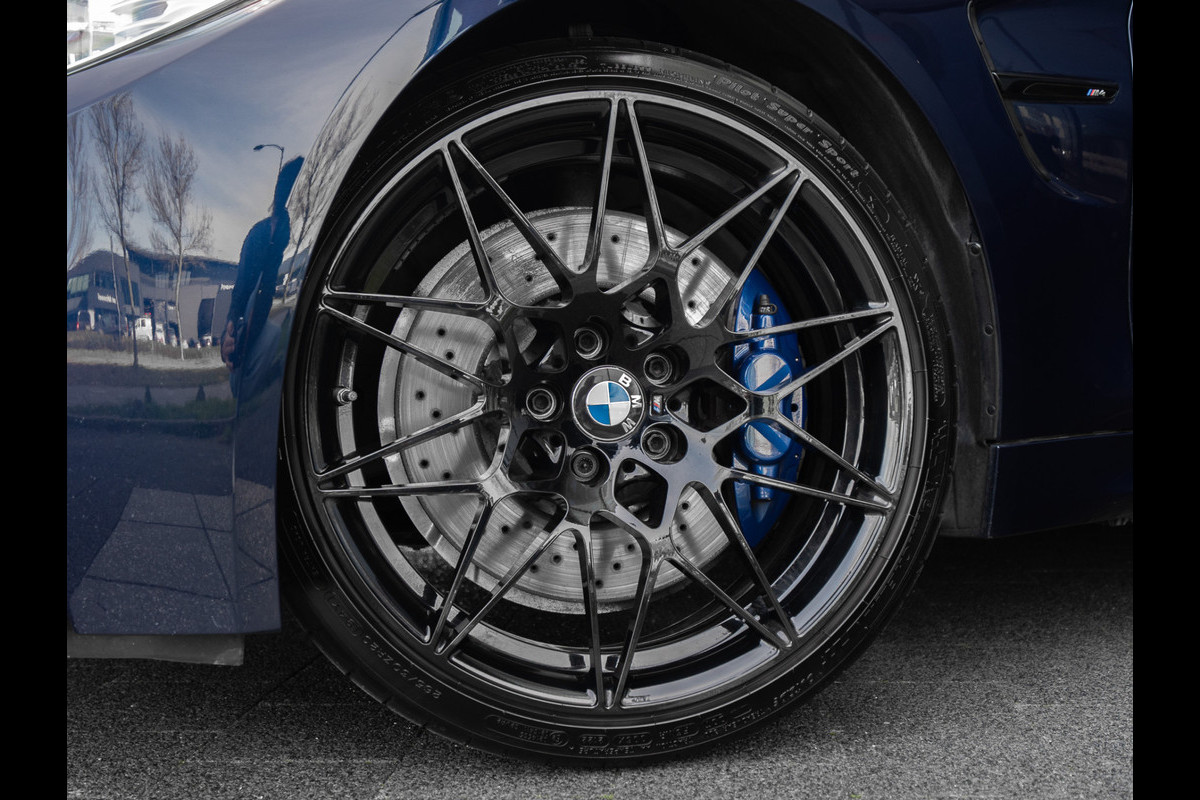 Een zéér exclusieve en compleet uitgevoerde BMW M4 Competition uit Februari 2017 en volledig dealer onderhouden! Deze M4 Competition is uitgevoerd in het Tanzaniet blauw metallic met alle accenten in het hoogglans zwart.