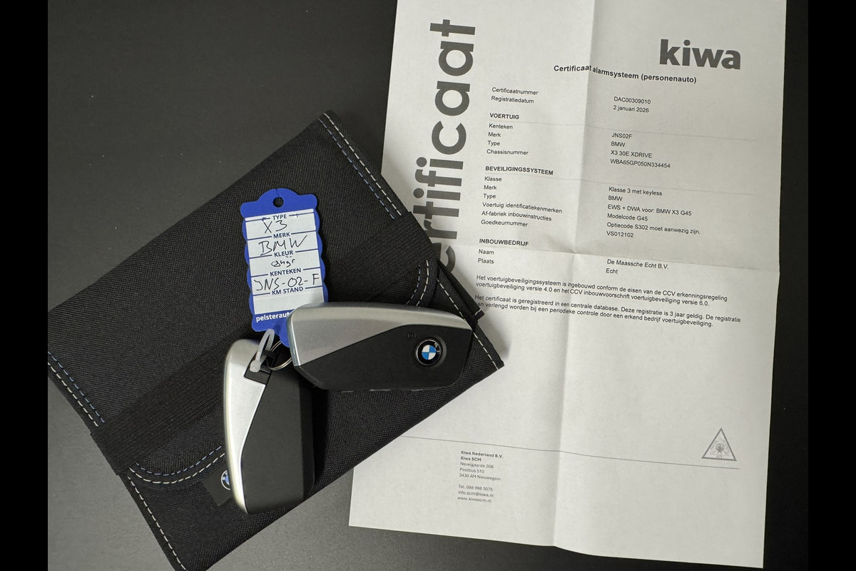 Zeer rijk uitgeruste Plug-in Hybrid X3 met een SOH van 99% waarmee je zo'n 88 kilometer volledig elektrisch kunt rijden. Deze BMW is voorzien van alle beschikbare pakketten met vele fijne opties zoals het Iconic Glow Exterieurpakket, memory seats, stoelverwarming en -koeling, achterbank verwarming, cruise, climate control, groot glazen pano dak, 360 camera met dodehoekdetectie en sensoren, Harmon Kardon audio, Apple/Android en nog veel meer. Met de elektrisch wegklapbare trekhaak mag je zelfs 2000 kg trekken. De BMW is reeds voorzien van een klasse 3 alarm met certificaat en heeft nog fabrieksgarantie tot 13-05-2028. Deze is binnen de garantieperiode nog te verlengen tot 13-05-2030.