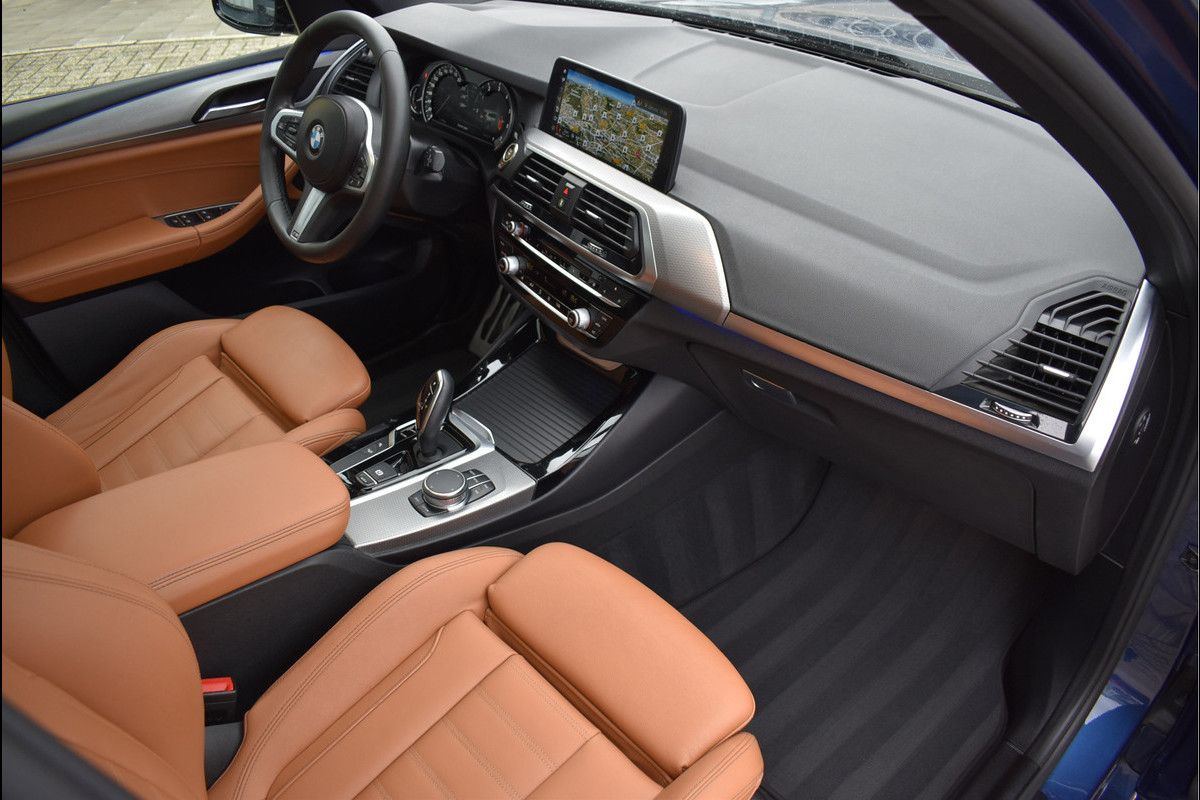 Door inruil verkregen BMW X3 xDrive 20i 184 Pk M-Pakket 06-2018 met 126 Dkm Origineel Gelopen 2e Eigenaar Opties: Full Led Koplampen M Pakket Int/Ext Shadow Line Exterieur Sportstoelen Cognac Bruin Navigatiesysteem Climate Control 3 Zone Stoelverwarming Cruise Control Zwarte Hemel Sfeerverlichting in Kleur Instelbaar Keyless Start Elektrische Achterklep Spiegels Elektrisch Inklapbaar Bluetooth Telefoon Achteruitrijcamera Lederen Airbag Panoramadak Trekhaak Origineel Wegklapbaar 21 Inch Velgen