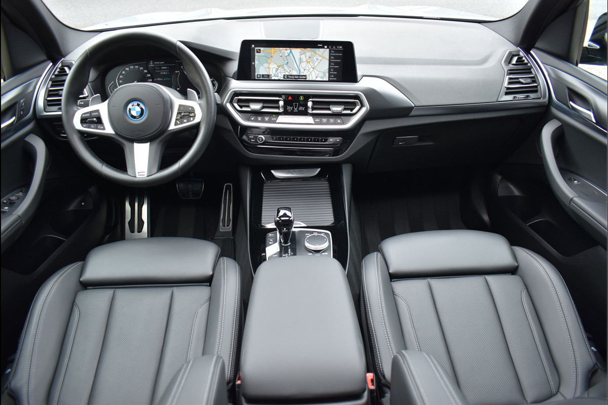 Facelift Model 2022 BMW X3 xDrive30e M-Sport Pakket 292 Pk Dealer Onderhouden 1e eigenaar 11-2021 Brooklyn Grijs Metallic Opties: Led Koplampen Panoramadak Lederen Sportstoelen Zwarte Hemel Navigatiesysteem Lederen Airbag M-Pakket Ext/Int Shadow Line Ext Pakket Spiegels Elektrisch Inklapbaar Elektrische Ramen Achteruitrijcamera Parkeersensoren V+A Cruise Control Adaptieve Onderstel Instelbaar Sfeerverlichting In Kleur Instelbaar DAB Radio Apple Carplay (android) Getint Glas Elektrische Achterklep 19 Inch M Sport Velgen