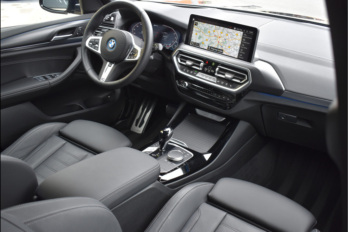 2022 Facelift Model BMW X3 xDrive30e M-Sport Pakket 292 Pk Dealer Onderhouden 1e eigenaar 09-2022 Saphire Zwart Metallic met 75 Dkm Opties: Vol Lederen Sportstoelen Elektrisch Verstelbaar met Memory Head-Up Display M Pakket Int/Ext Shadow Line (black optik) Keyless Start/Entry Apple Carplay Achteruitrijcamera Laser Koplampen 360 Camera Getint Glas Parkeersensoren V+A Sfeerverlichting in Kleur Instelbaar Lederen Airbag Cruise Control Navigatie Groot Climate Control 3 Zone Stoelverwarming Bluetooth Telefoon DAB Radio Spiegels Elektrisch Inklapbaar Digitale Cockpit Groot Elektrische Achterklep Dodehoek Detectie Sportonderstel Instelbaar 20 Inch BMW M-Sport Velgen