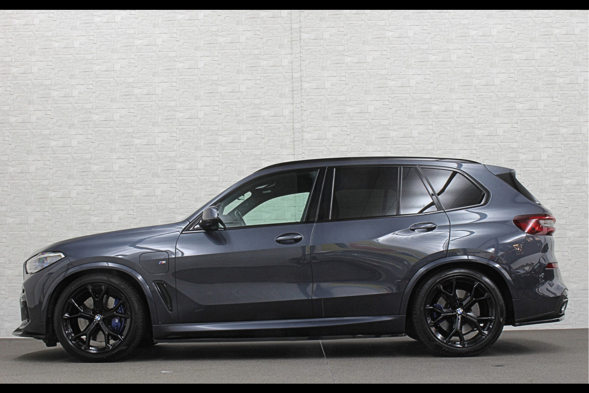 BMW X5 45e M-Stoelen | M-Performance | 360 Camera | ACC | Indiv. Leder | Harman-Kardon | Laser-LED | Keyless-Entry | Stoelventilatie | Head-Up | Memory | 21'' | Sfeerverlichting | Trekhaak | Luchtvering | Rij-Assistent Pro | Carplay | Black-Optic | Draadloos Laden.