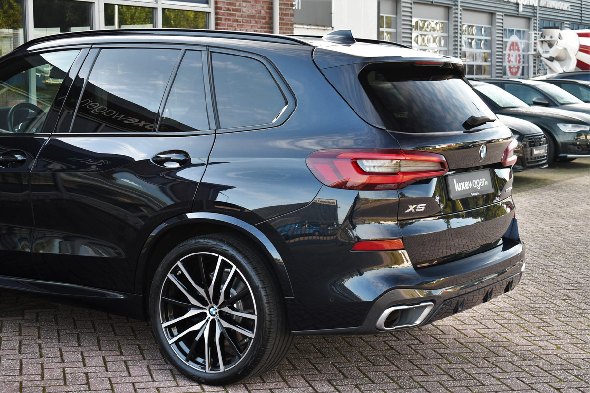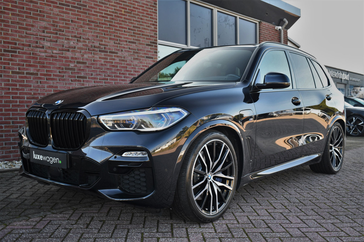 Zeer complete X5 45e M-Sport met o.a. panoramadak, luchtvering voor en achter, head-up display, elektrische trekhaak, harman/kardon audio, laser-LED, driving assistent professional (met adaptieve cruise control), soft-close, 4-wielbesturing, 22 inch velgen, etc!
