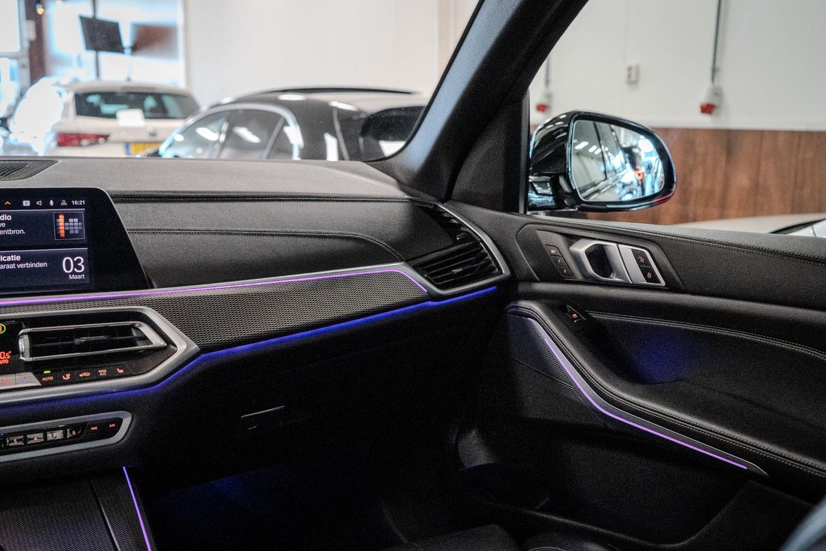 Deze X5 is uitgevoerd in de gewilde M Sport uitvoering, wat zorgt voor een sportieve uitstraling met onder andere M aerodynamica pakket, M sportremmen, M stuur en 21 inch M velgen. Het rijcomfort ligt op hoog niveau dankzij luchtvering met niveauregeling en adaptieve M-ophanging, waardoor de auto zowel sportief als comfortabel rijdt.