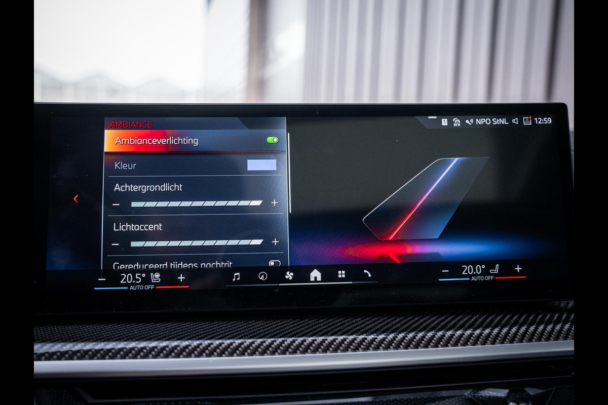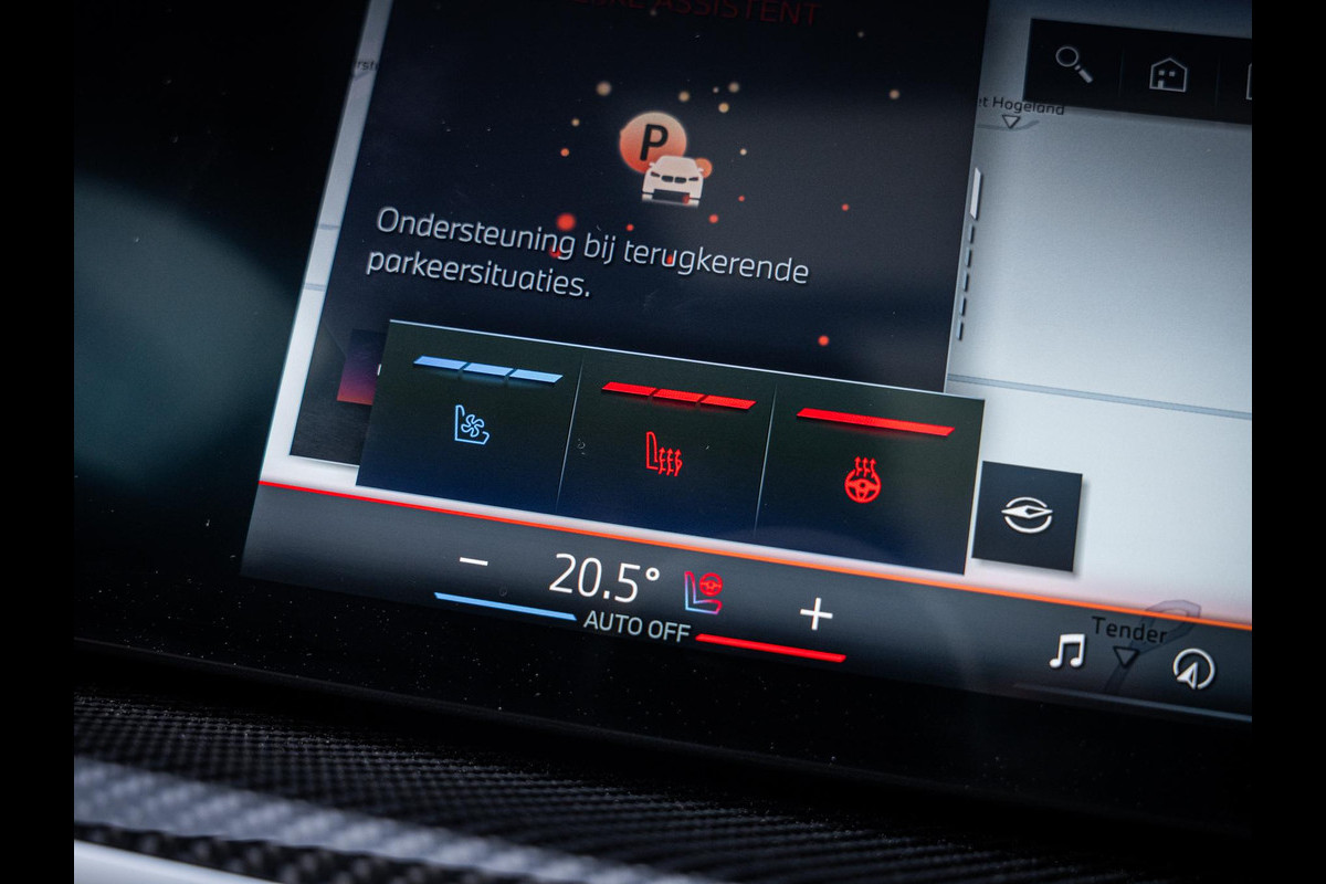 De sfeer in het interieur is simpelweg indrukwekkend. Dankzij de uitgebreide ambienteverlichting, volledig instelbaar in vrijwel iedere gewenste kleur, creëer je moeiteloos de ambiance die bij jouw stemming past. Het exclusieve Bowers & Wilkins high-end audiosysteem zorgt niet alleen voor een ongeëvenaarde geluidsbeleving van concertniveau, maar is ook visueel een statement. De stijlvol geïntegreerde en verlichte speakers maken het interieur nóg chiquer en geven de auto een bijna theaterachtige uitstraling. Tegelijkertijd zorgen de vele carbon interieurdelen ervoor dat het sportieve karakter behouden blijft; waar je ook kijkt, zie je hoogwaardig carbon en een perfecte afwerking.