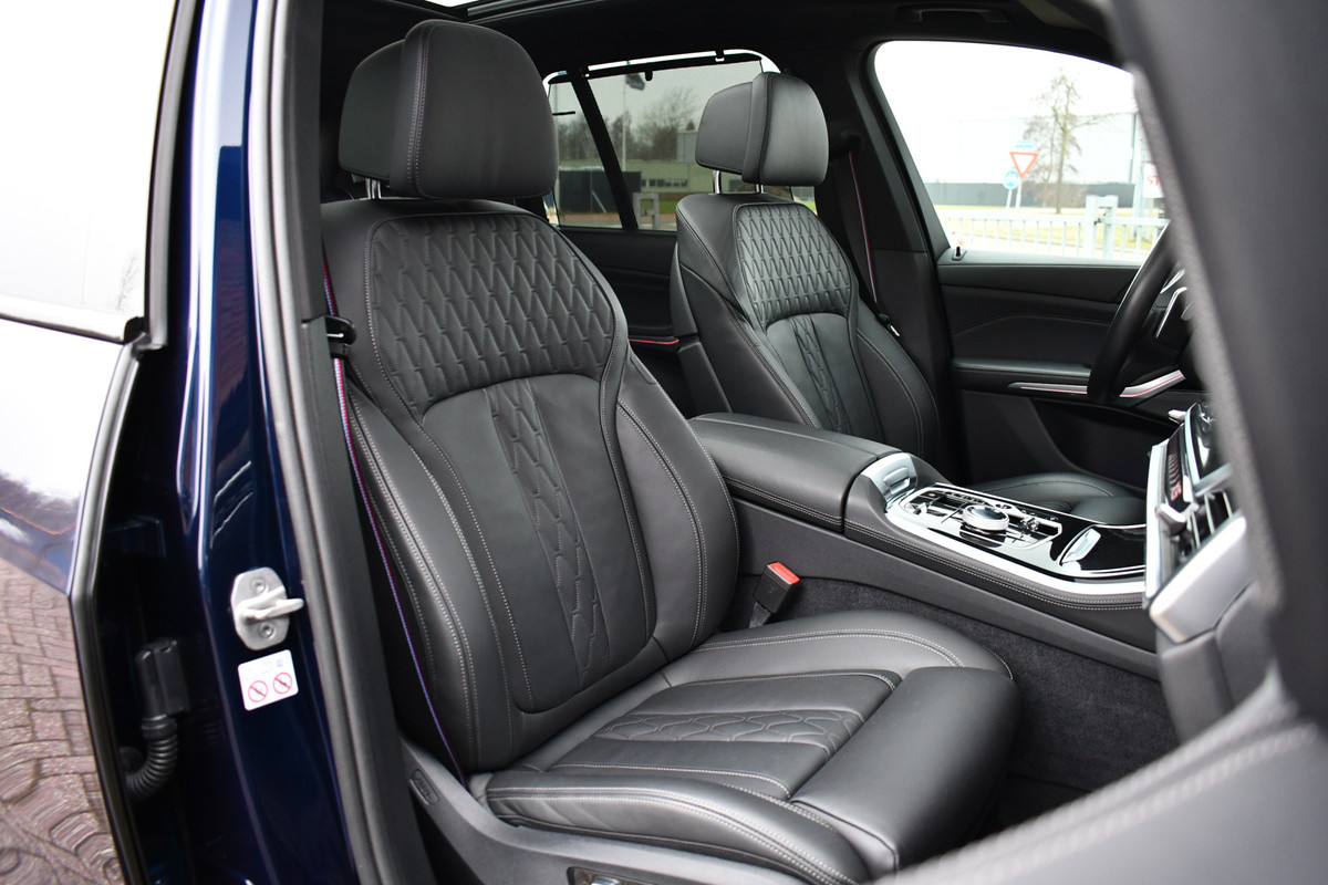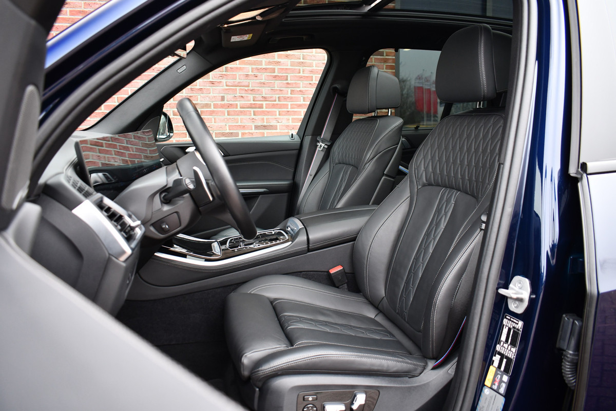 NET BINNEN. Meer foto's volgen! In Tanzanit blauw individual met merino leder en compleet met: M-Sport Pro pakket, elektrische trekhaak (3500kg), comfortzetels, adaptieve cruise control (Driving ast prof), 360 camera, head-up display, 21 inch velgen, verlichting in de grille, gebarenbesturing, alarm klasse 5, etc! Keurig dealer onderhouden en in perfecte staat.