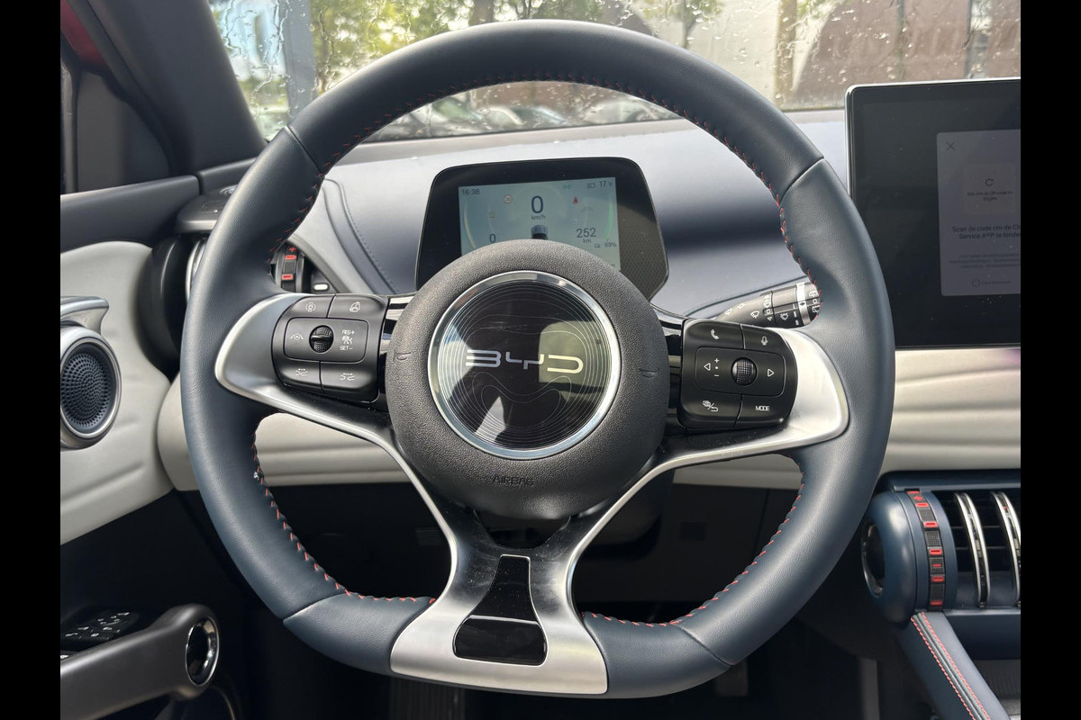 Een gevisualiseerd overzicht van alle belangrijke functies wordt geleverd door het digitale dashboard. Het gebruik van de 360 graden camera op deze auto zorgt voor een groter gezichtsveld en helpt de dode hoeken te elimineren. Adaptive cruise control houdt de ingestelde snelheid vast en houdt afstand tot het voertuig voor u. De conditie van deze auto is 24/7 inzichtelijk dankzij Connected Services. Deze BYD is voorzien van spraakbediening voor het full map navigatiesysteem en voor het audio-installatiesysteem met DAB-ontvangst. Maar u kunt ook de knoppen op het stuur gebruiken. De BYD is standaard voorzien van: achteropkomend verkeer waarschuwing, kruisend verkeer detectie, electronic climate control, draadloos opladen, keyless entry en automatisch dimmende binnenspiegel.
