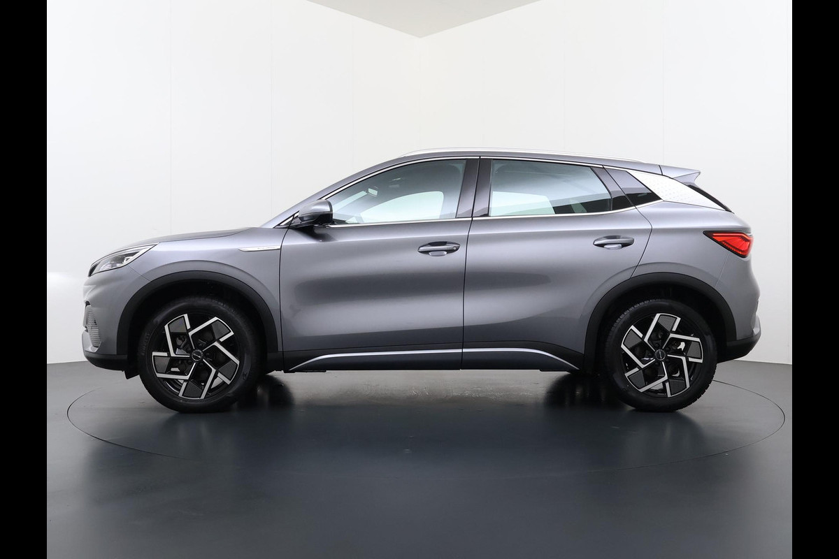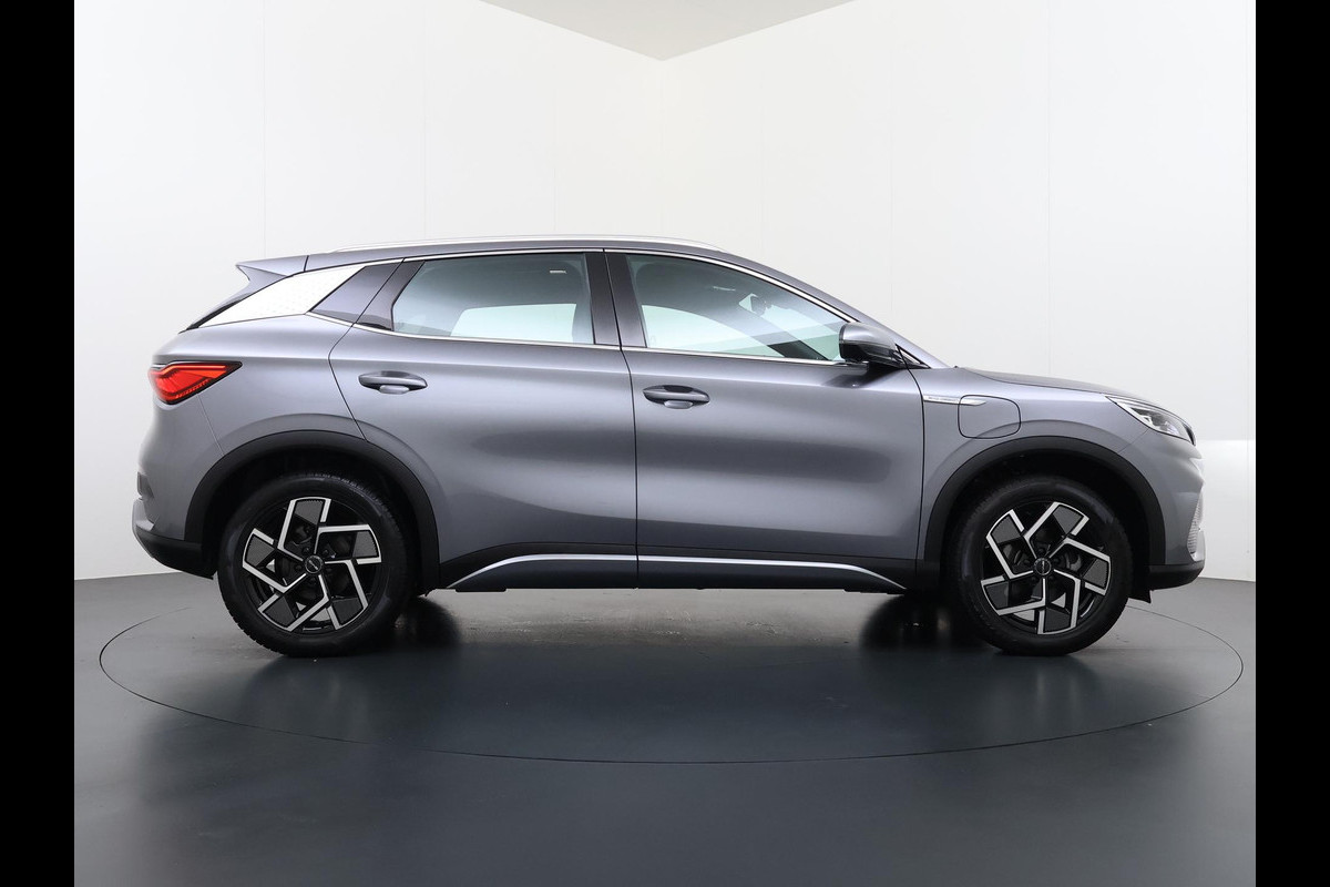 Het maakt niet uit of u binnen of buiten de stad rijdt. Het rijbereik van deze elektrische BYD ATTO 3 biedt u alle vrijheid om te gaan en te staan waar u wilt. U zult verrast zijn door de power van de elektromotor. En stil! De auto heeft een opmerkelijk lage kilometerstand van slechts 11927 Met deze motor haalt u veel kilometers uit een tank brandstof. De verwarmbare voorstoelen benadrukken nog maar eens dat we hier te maken hebben met een regelrechte verwenauto voor bestuurder en bijrijder. Het interieur baadt in daglicht dankzij het elektrisch bediende glazen panoramadak. De uitmonstering van deze auto wordt gecompleteerd door onder meer 18 inch lichtmetalen velgen, LED koplampen, in delen neerklapbare achterbank, LED-achterlichten en snelheidsafhankelijke stuurbekrachtiging.