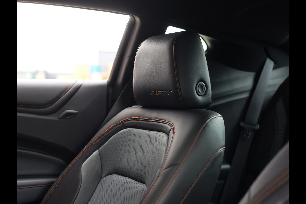 De 50th Anniversary is uitgevoerd in de exclusieve kleur Nightfall Gray Metallic, voorzien van de kenmerkende oranje striping, jubileumbadges en 20 inch aluminium velgen met speciale wielnaven. Het interieur is afgewerkt in zwart leer met suède accenten en contrasterende oranje stiksels, waarbij de verlichte dorpellijsten en de unieke details de jubileumuitvoering extra aandacht geven.