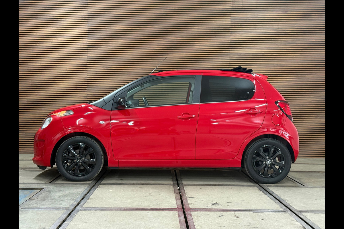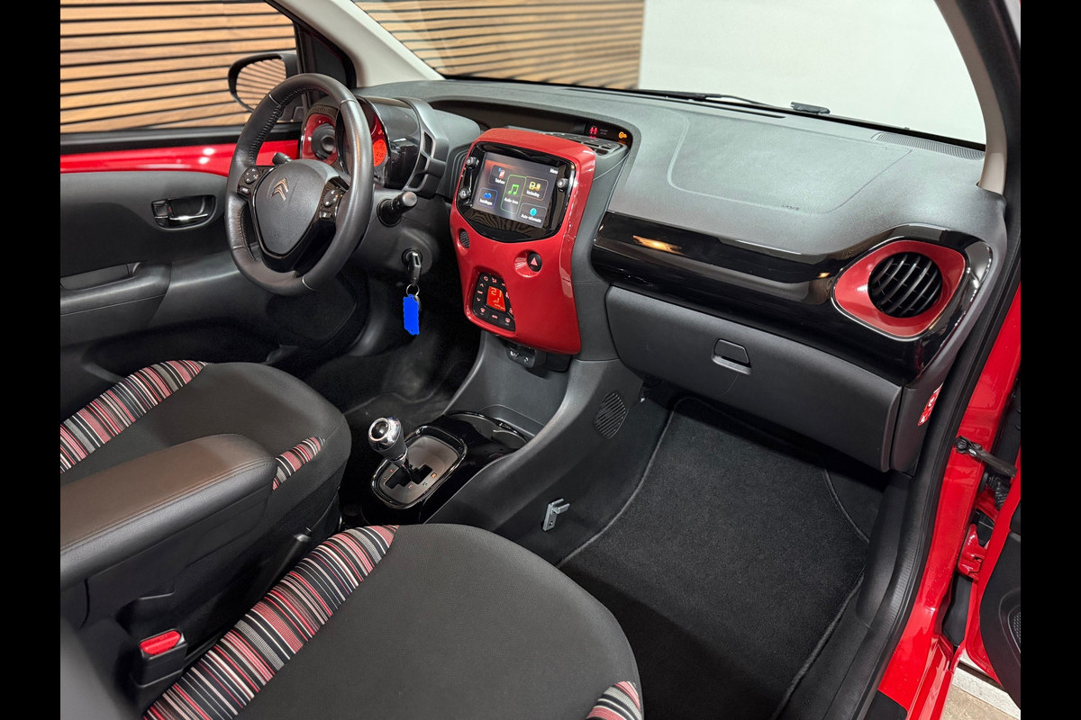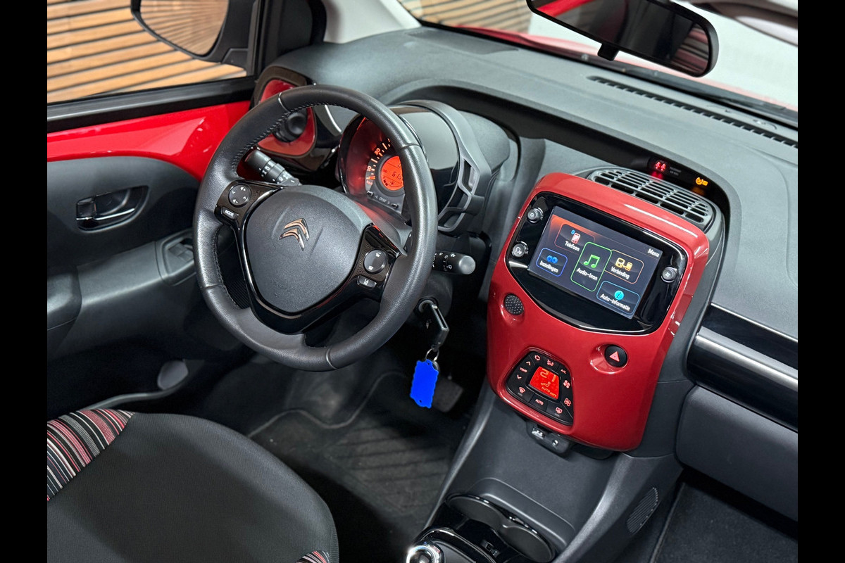 Hoe leuk is dit!? Een Citroen C1 1.0 VTI Feel Airscape (Cabriolet) met een automaat! Lekker opvallend rood met veel zwarte accenten als dak, spiegels en lichtmetalen velgen. Verder voorzien van achteruitrijcamera, stoelverwarming, elektrische spiegels, climate control en elektrisch bedienbaar dak.
