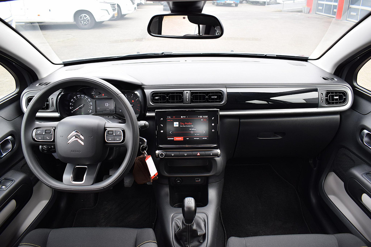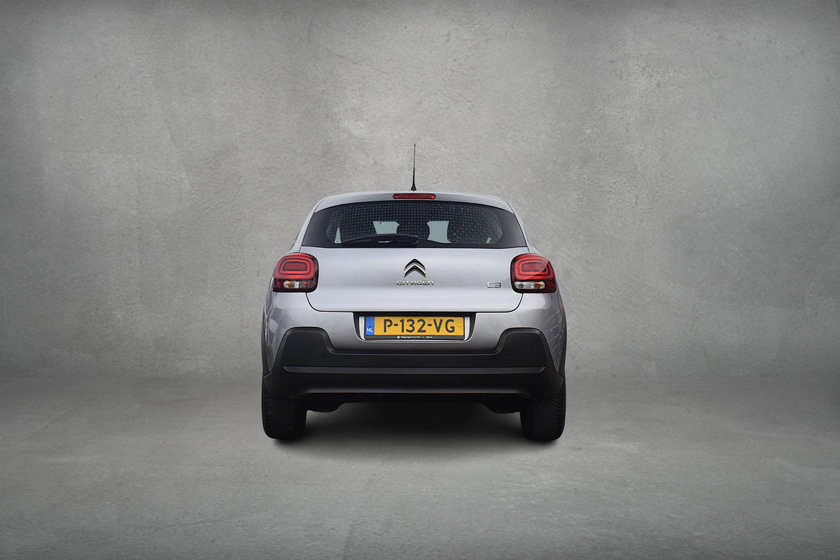 Kilometerstand? Oliepeil? Accuspanning? Allemaal te zien via de app. Overal. Altijd. Dankzij Connected Services. Houdt uw ogen op de weg en uw handen aan het stuur. Het audiosysteem met dab-ontvangst bedient u vanaf het stuurwiel. Deze Citroen C3 is voorzien van sensoren aan de achterzijde om een achteropkomend verkeer waarschuwing te geven als de afstand tussen u en een achterligger te klein is. Het comfort wordt verhoogd door de aanwezige automatische airconditioning. Achter het stuur van deze Citroen bent u niet alleen. De auto kijkt als het ware met u mee tijdens de rit. De regensensor schakelt de ruitenwissers in als het nodig is en de automatisch inschakelbare verlichting doet de lichten voor u aan. Ook cruise control, automatisch dimmende binnenspiegel, isofix-aansluiting, centrale deurvergrendeling met afstandsbediening, boordcomputer en verstelbaar stuur horen tot de voorzieningen op deze auto.