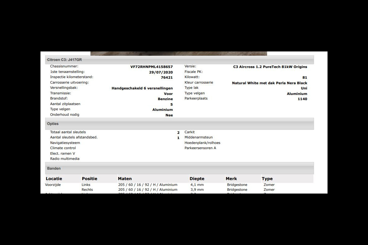 Het kan echter voorkomen dat uit de automatische voertuiginformatie een optie of accessoire naar voren komt die helaas toch niet op de auto aanwezig is.