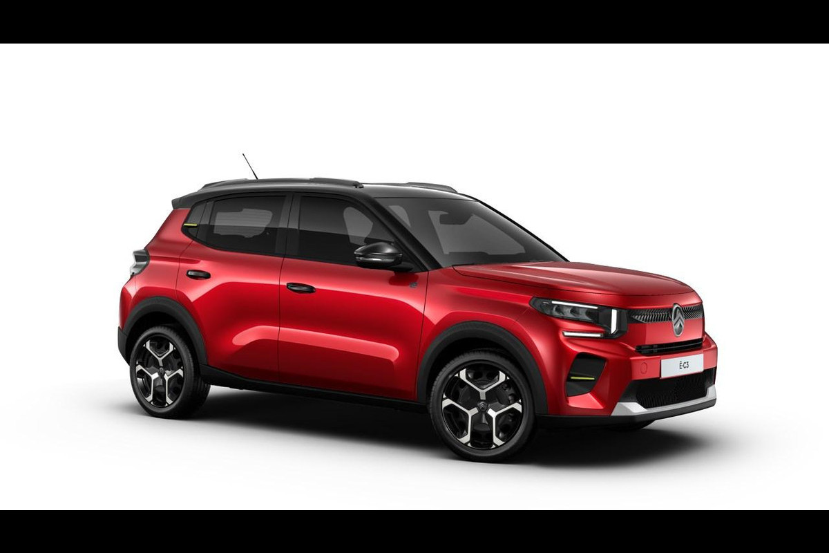 Citroën ë-C3 You + Pack PLUS 44 kWh | Two tone dak | Snelladen tot 100 kW | Draadloos Apple Carplay & Android Auto | Parkeersensoren | Airco | 17" stalen velgen | | Nieuw model!