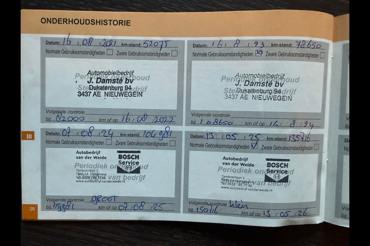 Mijn auto’s worden technisch nagekeken bij aflevering, en worden afgeleverd met een onderhoudsbeurt en APK keuring.