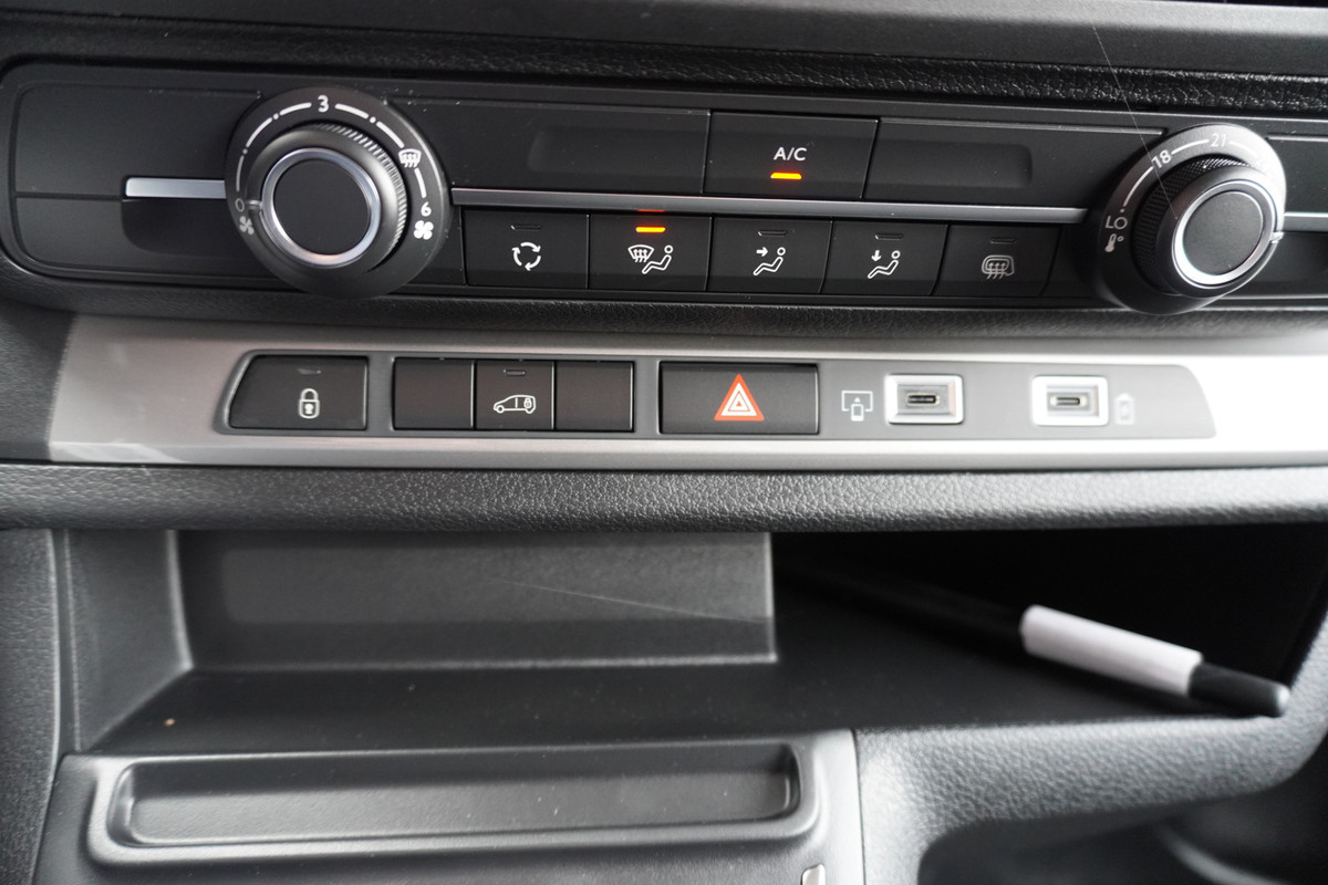 Met de nieuwste technologieën aan boord is deze Citroën in staat om zelf te reageren op potentieel gevaarlijke situaties op de weg. Deze Citroën Jumpy is ook behulpzaam als het gaat om een rechte koers. Het Lane-keeping systeem signaleert en corrigeert als u onbedoeld de rijstrooklijnen dreigt te overschrijden. Bij concentratieverlies van de bestuurder geeft vermoeidheidsherkenning automatisch een waarschuwingssignaal. De veiligheid van deze auto wordt verder verhoogd door hill hold functie, autonoom remsysteem en bandenspanningcontrolesysteem.