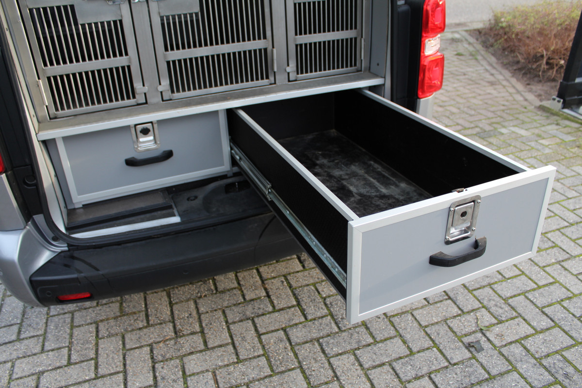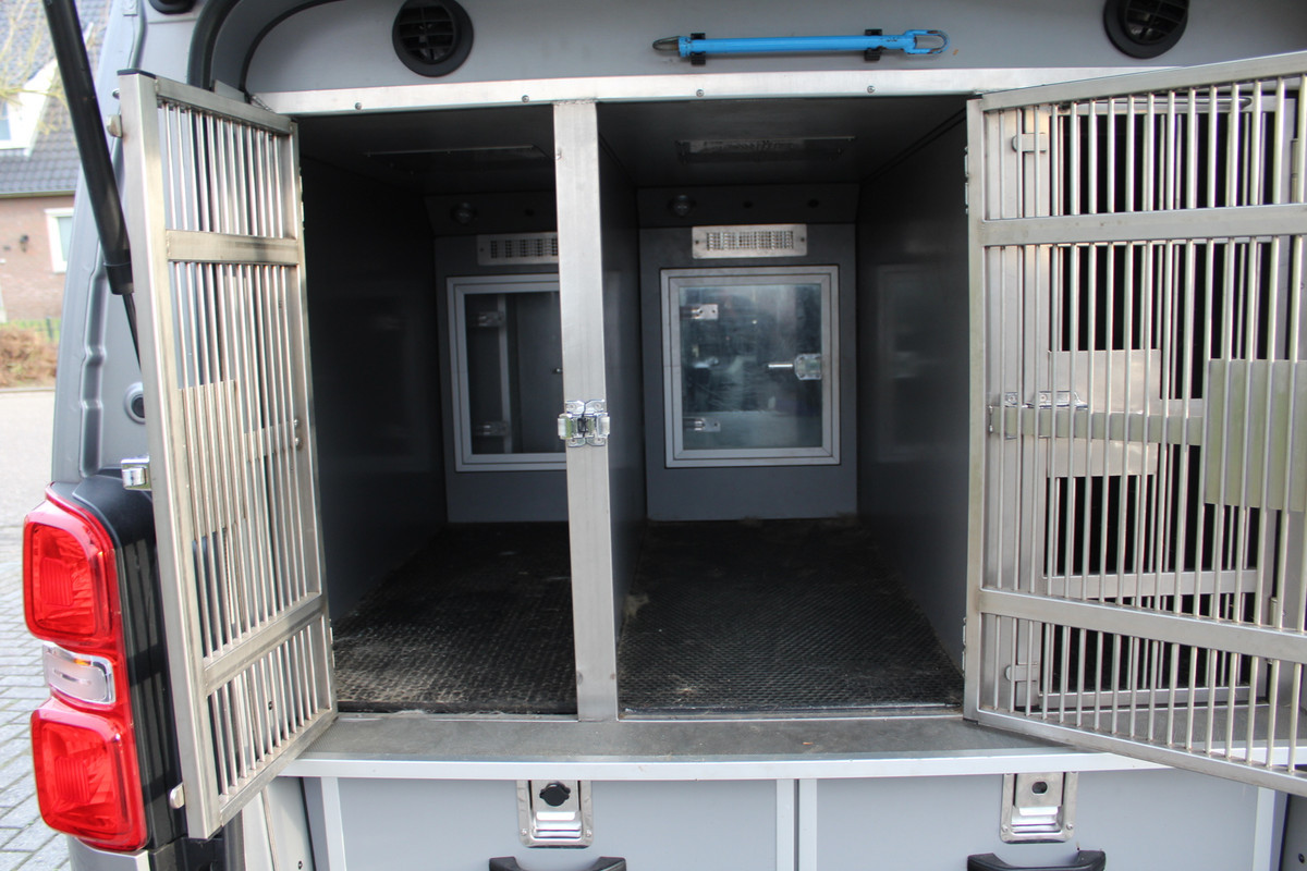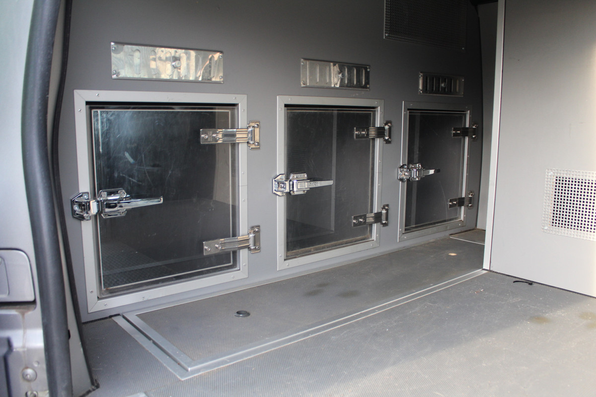 Professioneel ingericht voor het vervoer minstens 3 honden, met beluchting, klimaatcontrole en ladensysteem.