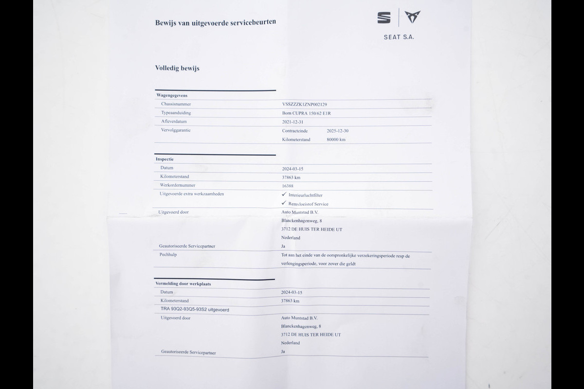 Onderhoudsboekjes: Aanwezig