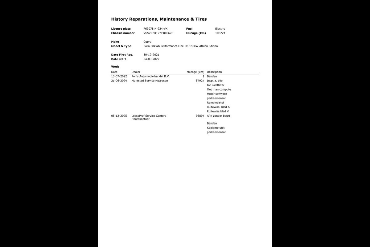 Veel van de door ons ingekochte (Nederlandse) occasions zijn afkomstig van de eerste eigenaar en zijn vaak ook dealer onderhouden, ook de Nationale Auto Pas (NAP) en onderhoudshistorie zijn door ons toegevoegd in de advertentie, indien aanwezig. Wij doen niet alleen in-, en verkoop maar hebben daarnaast ook een volledig ingerichte werkplaats met 8 bruggen waardoor wij de volledige service in eigen hand hebben!