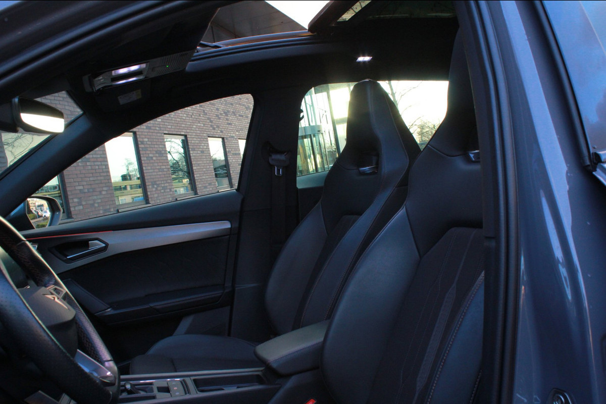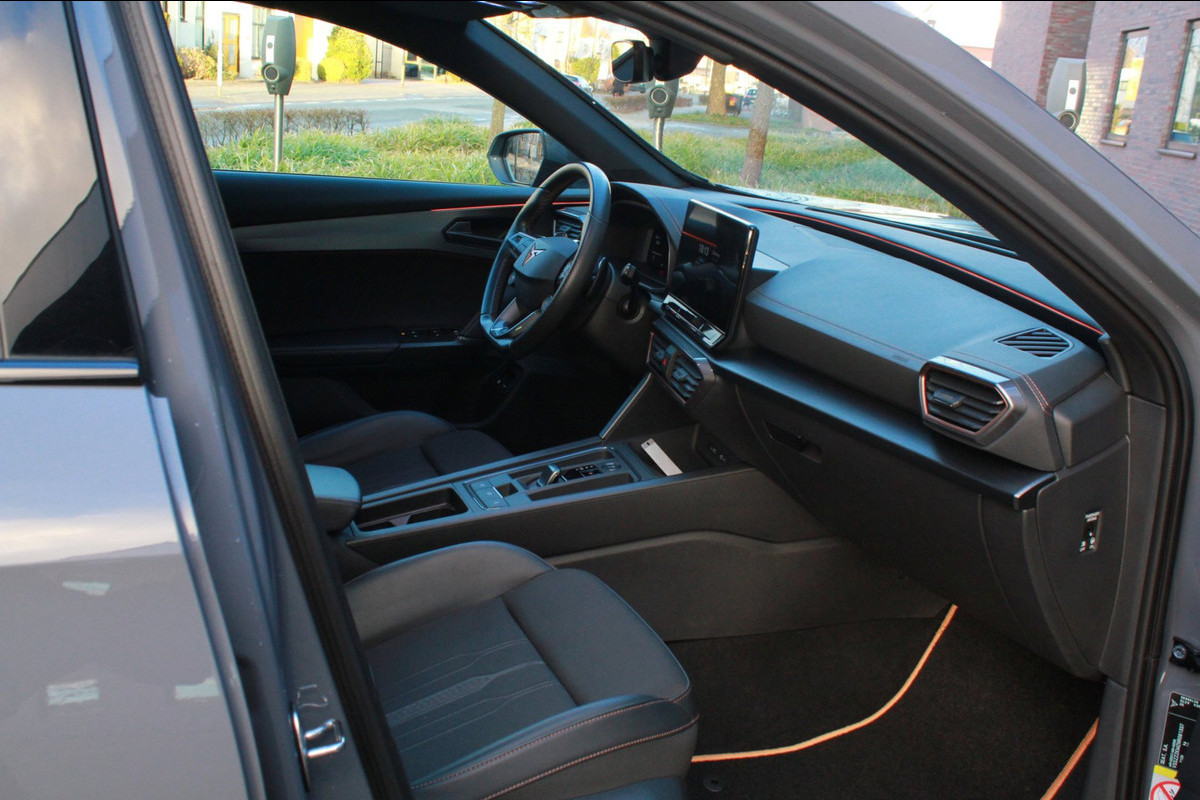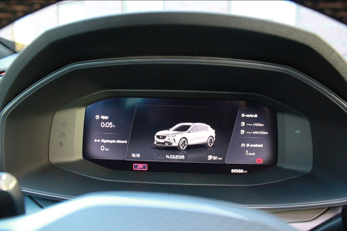 Het digitale dashboard in deze auto maakt personalisatie van uw cockpitinterface mogelijk. Hoeveel ruimte heeft u nog bij het inparkeren? De achteruitrijcamera brengt helder in beeld wat zich achter de auto bevindt en geeft een geluidssignaal. Met adaptive cruise control houdt de auto zelfstandig afstand tot uw voorligger. Een veiligheidsverhogende optie waarmee u comfortabel onderweg bent. Als u 'm vraagt 'hoe gaat het?' geeft deze auto zelf het antwoord. Via de app op uw smartphone. U checkt de meters waar u maar wilt, of activeert diverse functies alvast. Een optie die de veiligheid verhoogt, is de bediening vanaf het stuur van het audio-installatiesysteem (met DAB-radio!) en het navigatiesysteem. Als u wilt kunt u beiden zelfs met uw stem bedienen. De CUPRA is standaard voorzien van: automatische airconditioning, draadloos opladen, regensensor, keyless entry en automatisch dimmende binnenspiegel.