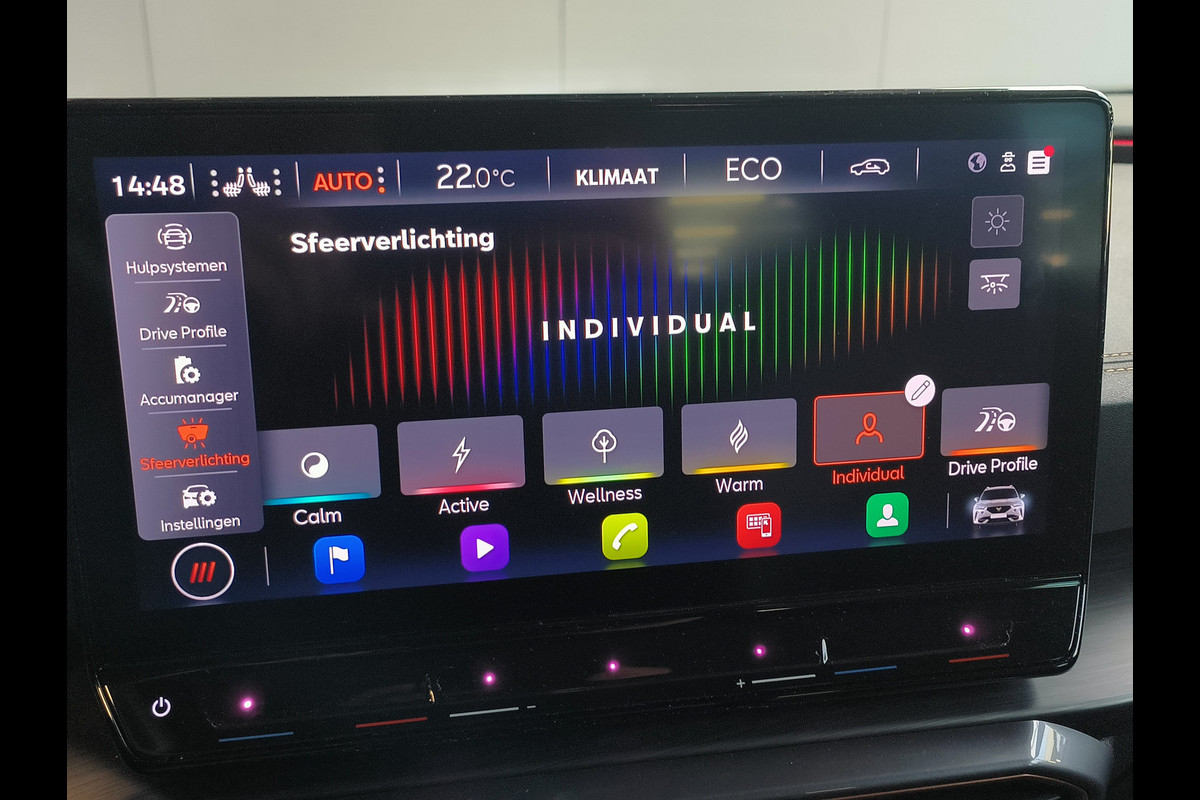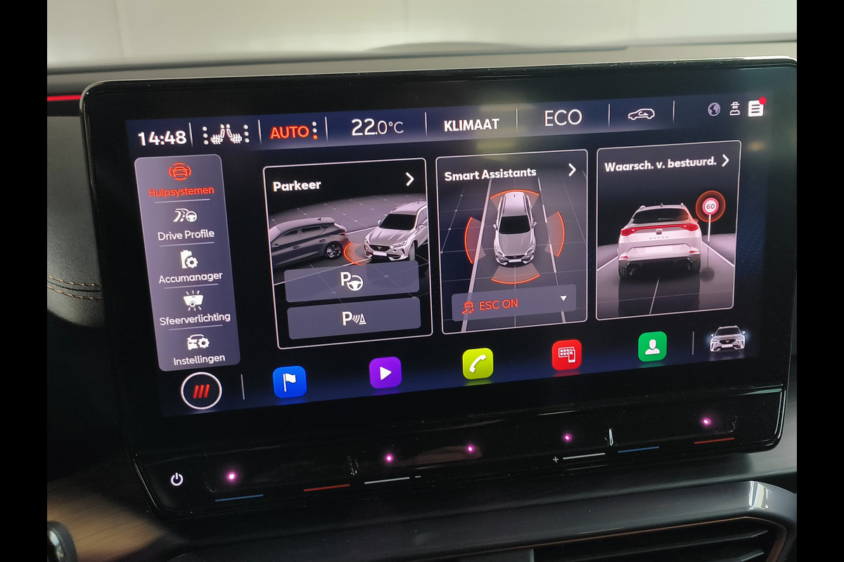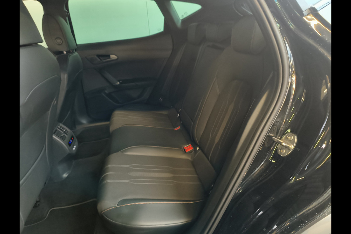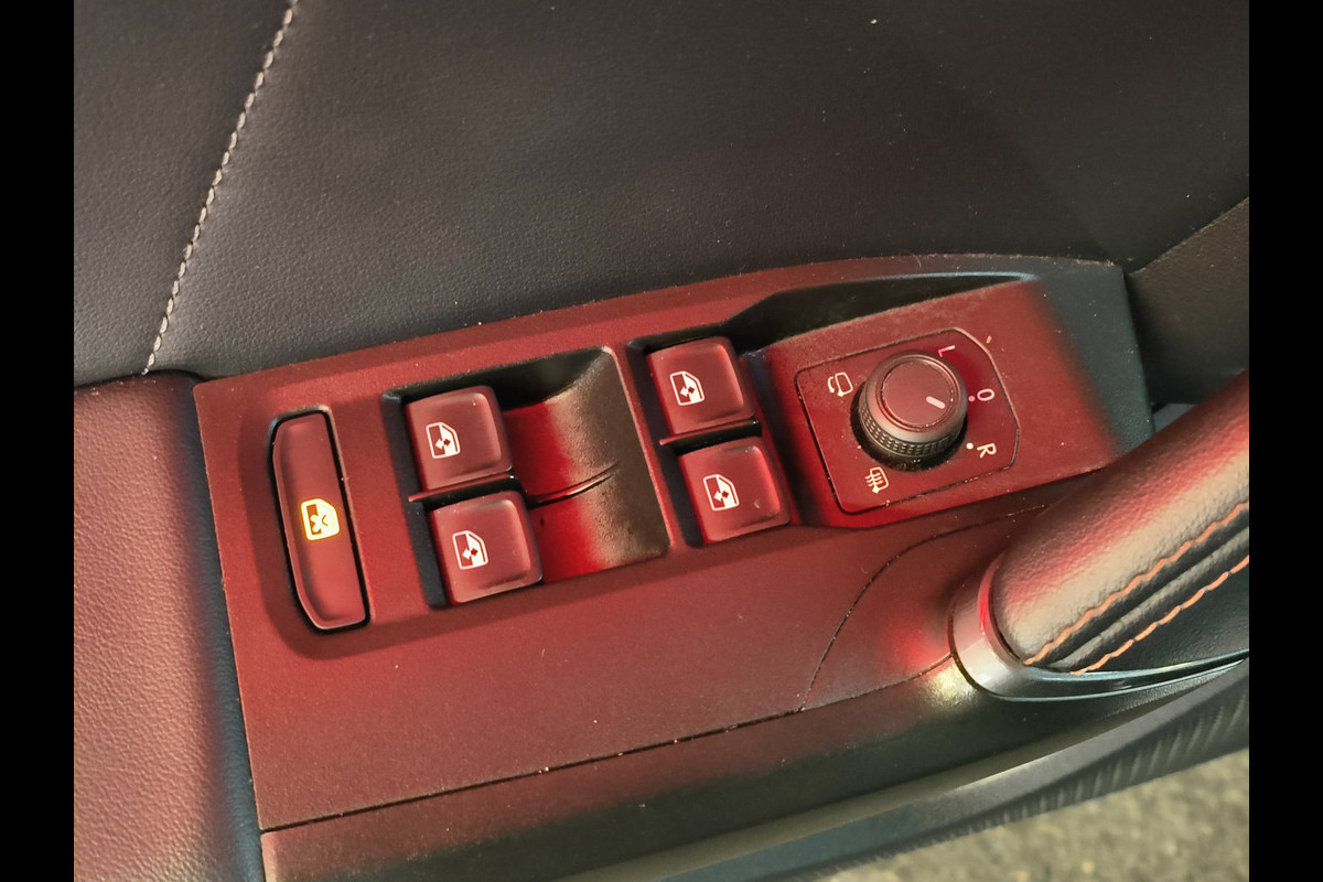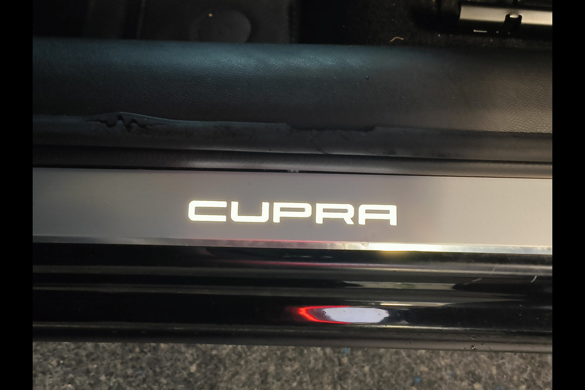 Het systeem controleert alle belangrijke functies en geeft die perfect weer via het digitale dashboard. Met adaptive cruise control houdt de auto zelfstandig afstand tot uw voorligger. Een veiligheidsverhogende optie waarmee u comfortabel onderweg bent. Zo'n lekkere jonge auto heeft natuurlijk leuke extra's, zoals remote services. Met een speciale app maakt u overal verbinding met de auto. Zo kunt u functies activeren en controleren. Gemakkelijk en veilig is de spraakbediening voor het audio-installatiesysteem en het full map navigatiesysteem. Daarbij kunt u deze ook bedienen met de knoppen op het stuur. De audio-kwaliteit is geweldig, dankzij de DAB-ontvangst. De sensoren van de achteropkomend verkeer waarschuwing registreren wat er gebeurt in de dode hoeken en achter u. U krijgt meteen een waarschuwing als u een achterligger over het hoofd ziet. Met automatische airconditioning, schakelpaddles aan het stuur, parkeersensoren achter, regensensor, keyless entry en automatisch dimmende binnenspiegel is deze CUPRA helemaal compleet.