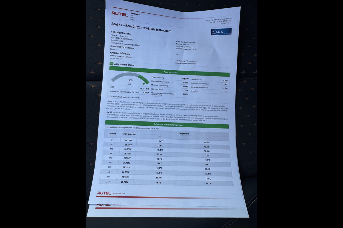 Accu: 82 kWh, Conditie: 96%