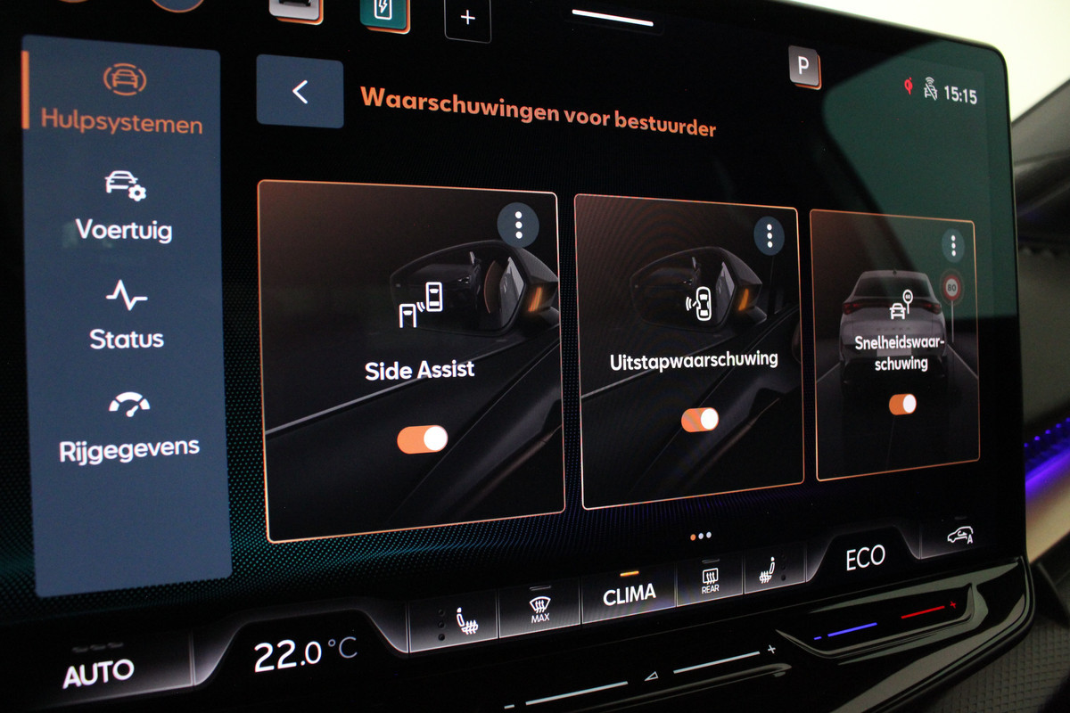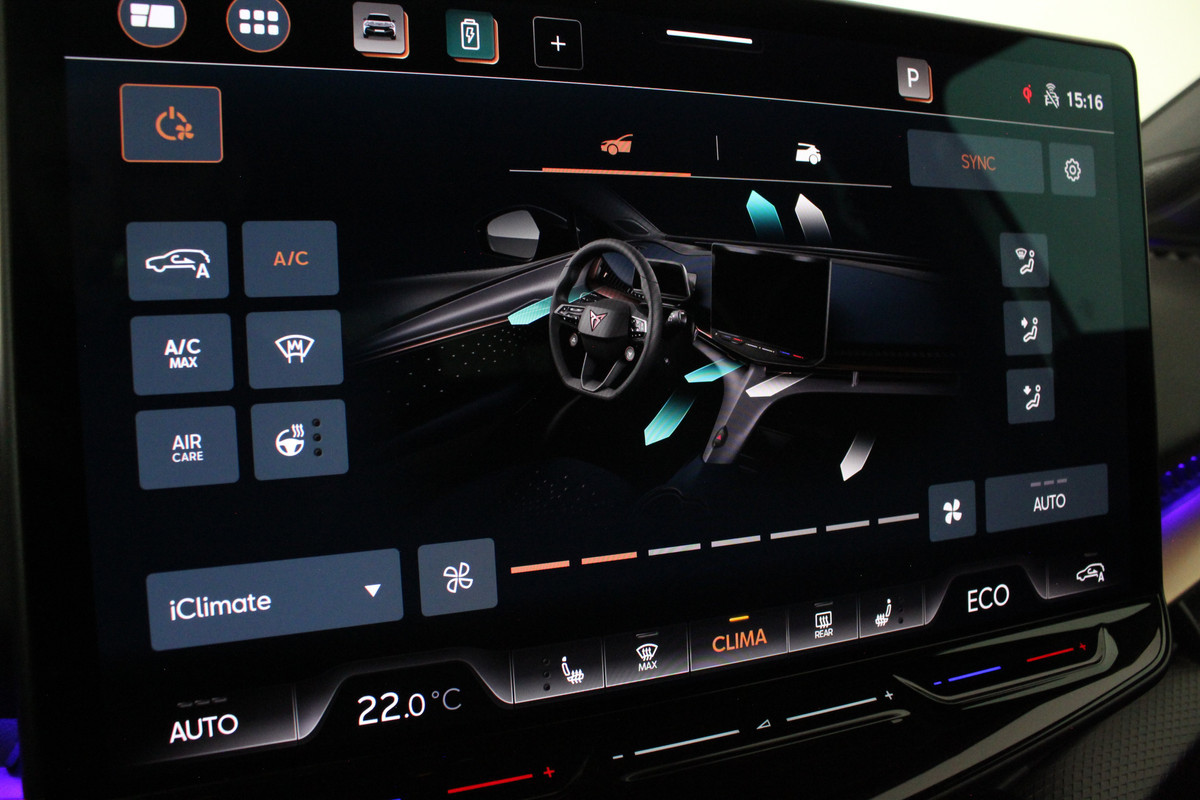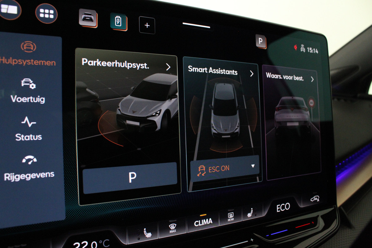 Daarnaast biedt deze CUPRA volop comfort en gebruiksgemak. Zo is de auto voorzien van een warmtepomp, verwarmde voorstoelen, verwarmd stuurwiel, elektrisch bedienbare achterklep met sensorsturing en een uitgebreid infotainmentsysteem met groot 15 inch touchscreen.
