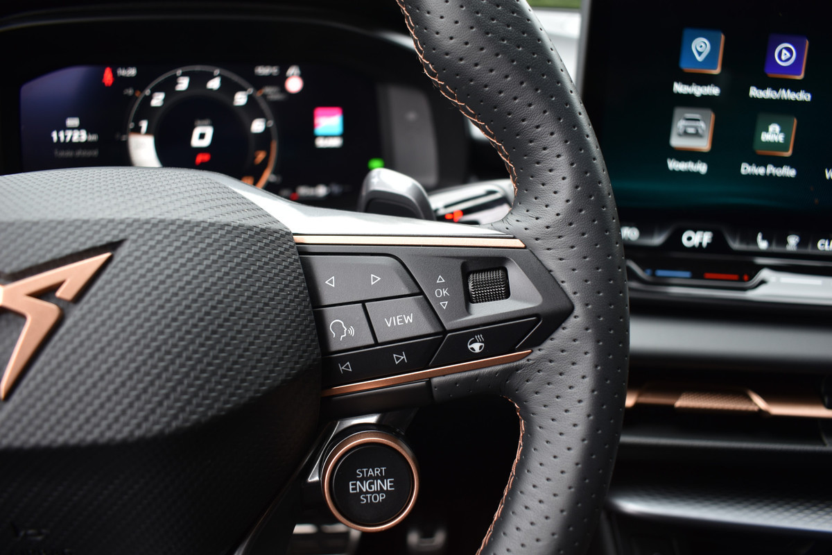 Compleet met vele opties en extra`s o.a: volledig digitaal instrumentenpaneel, entertainment systeem navigatie/bluetooth/audio, half leder/alcantara interieur, elektrisch verstelbare sportstoelen, stoel verwarming, bestuurdersstoel met memory, multifunctioneel CUPRA sport stuurwiel incl. stuurwiel verwarming, automatische airco, adaptieve cruise-control, LED verlichting met LED koplampen, parkeer sensoren voor en achter, rondom Parkeercamera, parkeerhulp automatisch inparkeren, buitenspiegels elektrisch inklapbaar, LED verlichting, interieur sfeer verlichting, zwarte hemelbekleding, Cupra lichtmetalen velgen, dodehoekdetectie, en nog veel meer!