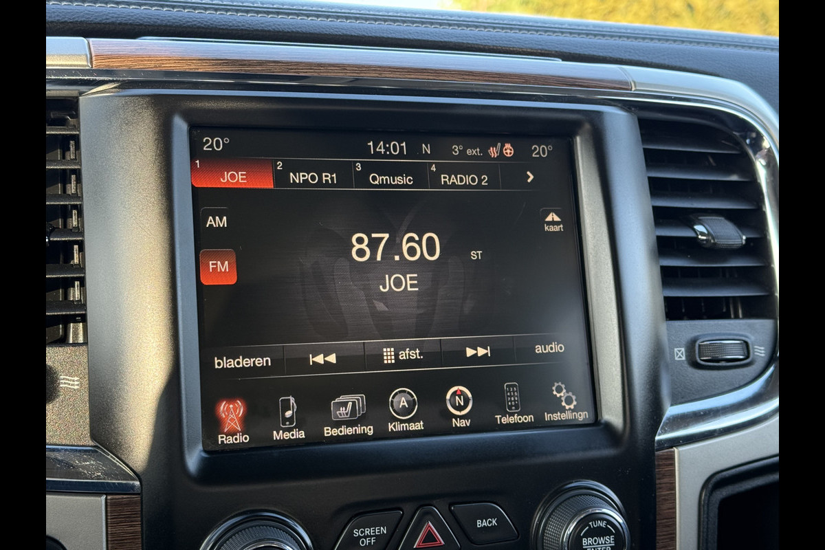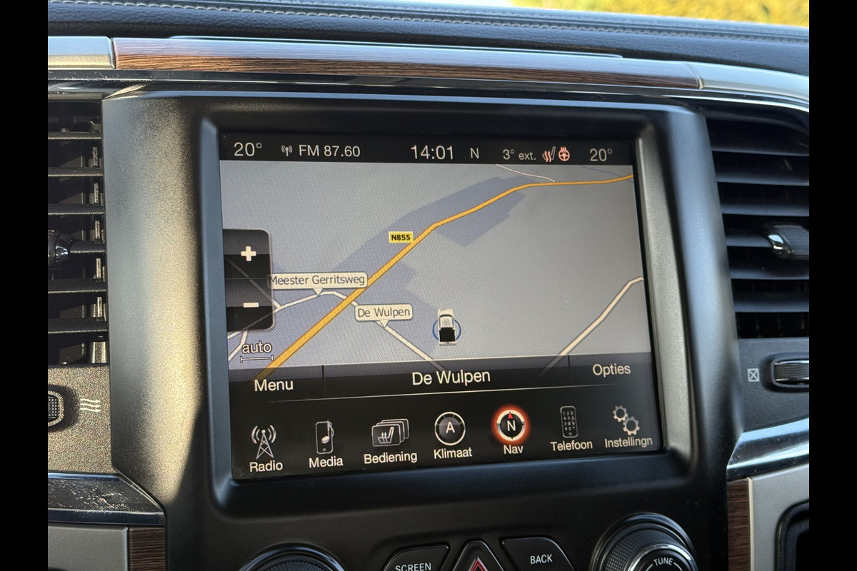 Origineel Nederlands geleverde Dodge Ram 500 3.0 V6 Diesel 4x4. Laramie uitvoering met o.a. Climate control, Cruise control, Stoelverwarming voor en achterin, Stoelventilatie voorin, Stuurwiel verwarming, Navigatiesysteem, Achteruitrij camera, Schuif/kanteldak, Lederen bekleding en Trekhaak met 3500 kg trekgewicht. Te koop bij Ruinemans RAM!