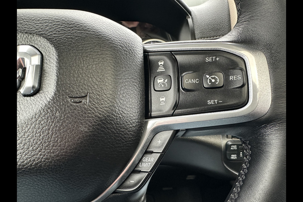 Nette Dodge Ram 1500 5.7 V8 Laramie crew cab uitgevoerd in de prachtige kleur Delmonico Red.. Rijk uitgevoerd met o.a. Adaptive Cruise control, Rijstrooksensor, Dodehoek detectie, Panoramadak, 12 inch scherm, Stoelverwarming voor en achterin, Geventileerde voorstoelen, Stuurverwarming, Harman/Kardon audio, 360° Camera en Trekhaak met 3500 kg trekgewicht.