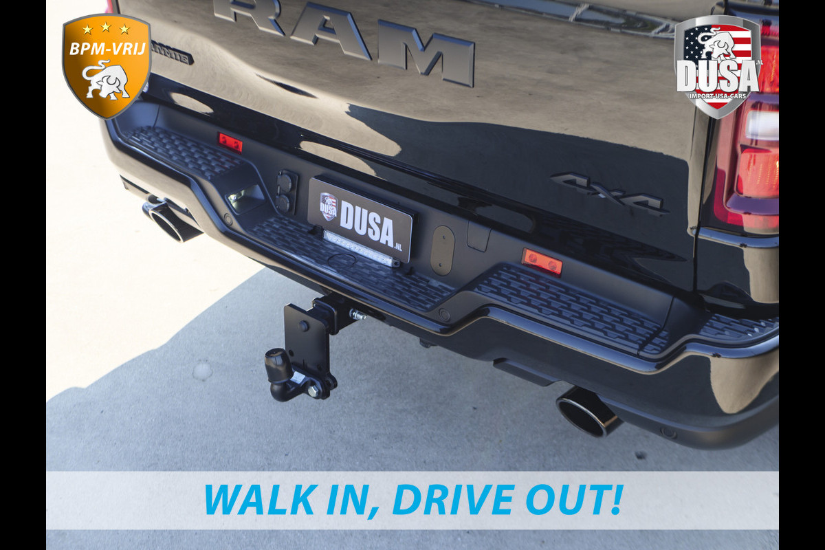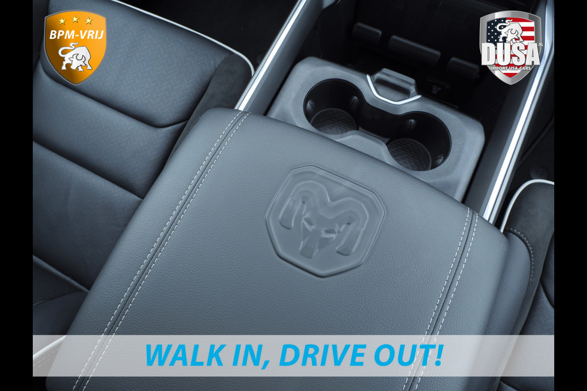 Ontspannen en zorgeloos autorijden, dat doet u met deze Dodge RAM. Deze nieuwe auto is nu uit voorraad leverbaar. Hij heeft een benzinemotor en een automatische transmissie. Ook een fijne dosis klasse is bijgeleverd, met het lederen interieur. Zit u goed? De stoelen zijn eenvoudig instelbaar dankzij de elektrische bediening met geheugen. Het interieur baadt in een zee van licht door het glazen panoramadak. Ook op de achterbank kunnen passagiers zichzelf snel opwarmen dankzij de achterbankverwarming. In deze Dodge profiteert u onder andere ook van: 22 inch lichtmetalen velgen, LED koplampen, elektrisch inklapbare buitenspiegels en treeplanken.