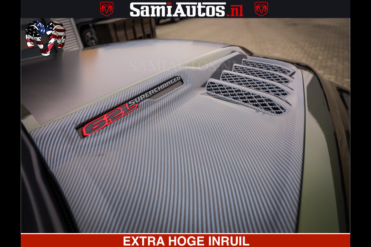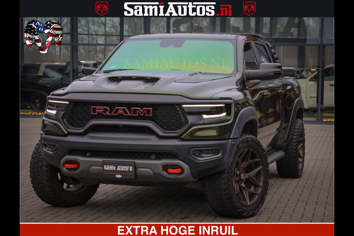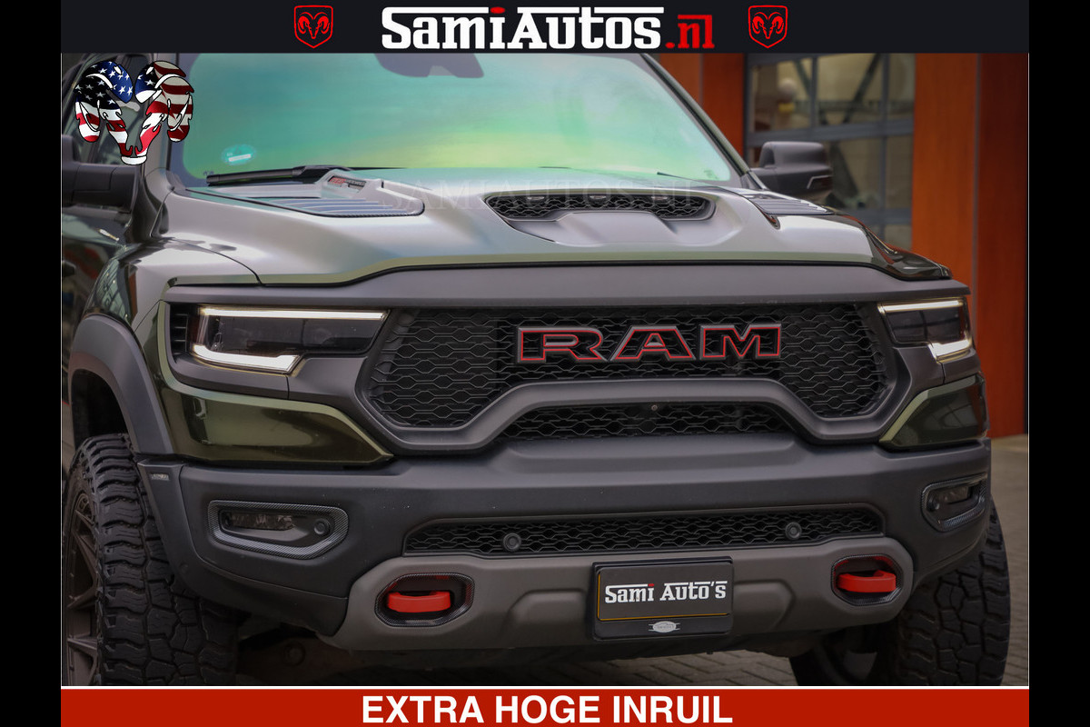 Dodge Ram 1500 TRX OLEA GREEN HELLCAT 6.2 V8 712PK | CARBON PACK | RODE STIKSELS | BOM VOL | 4PLAY WHEELS | DUBBELE CABINE | 5 PERSOONS DC | DE MOOISTE VAN NL |