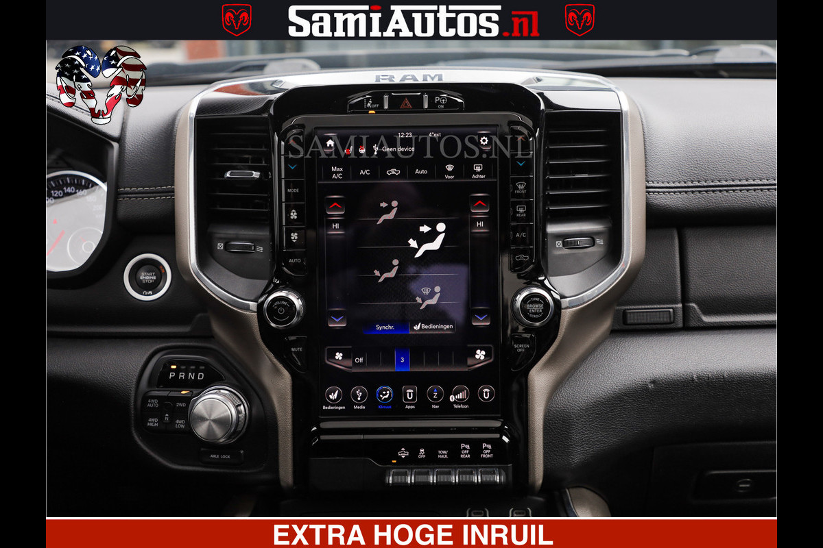 RAM VOL | BLACK ON BLACK | LUCHTVERING | 5.7 V8 HEMI | PANODAK | ADAPTIVE CRUISE | 360 CAMERA | 22 INCH SPORT WIELEN | DUBELE CABINE | 5 PERSOONS |