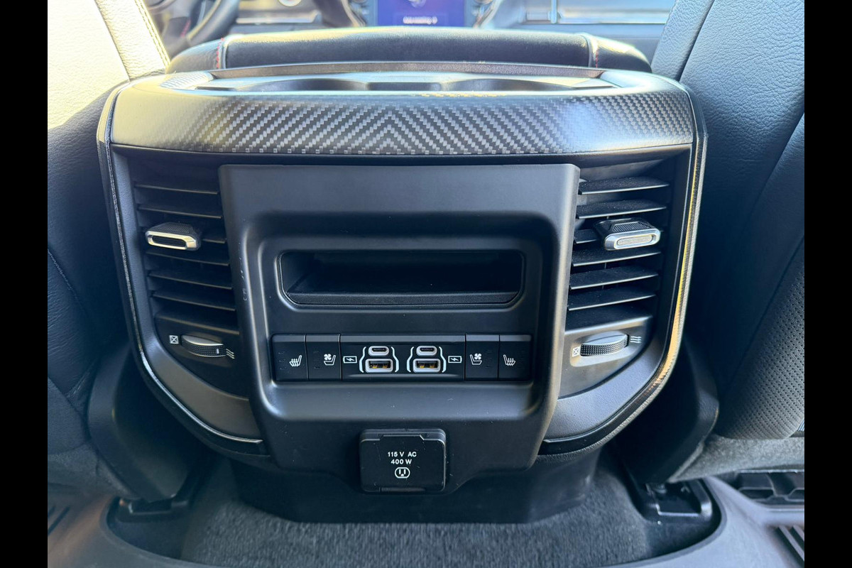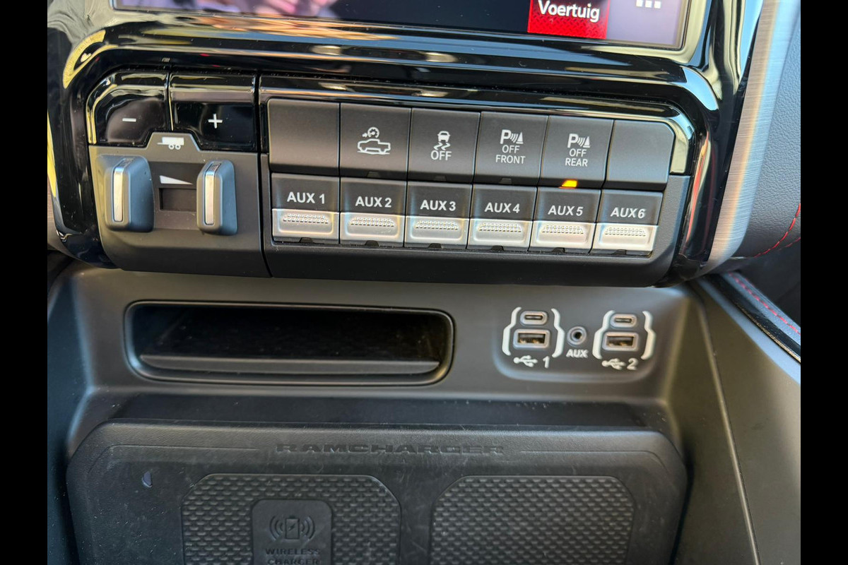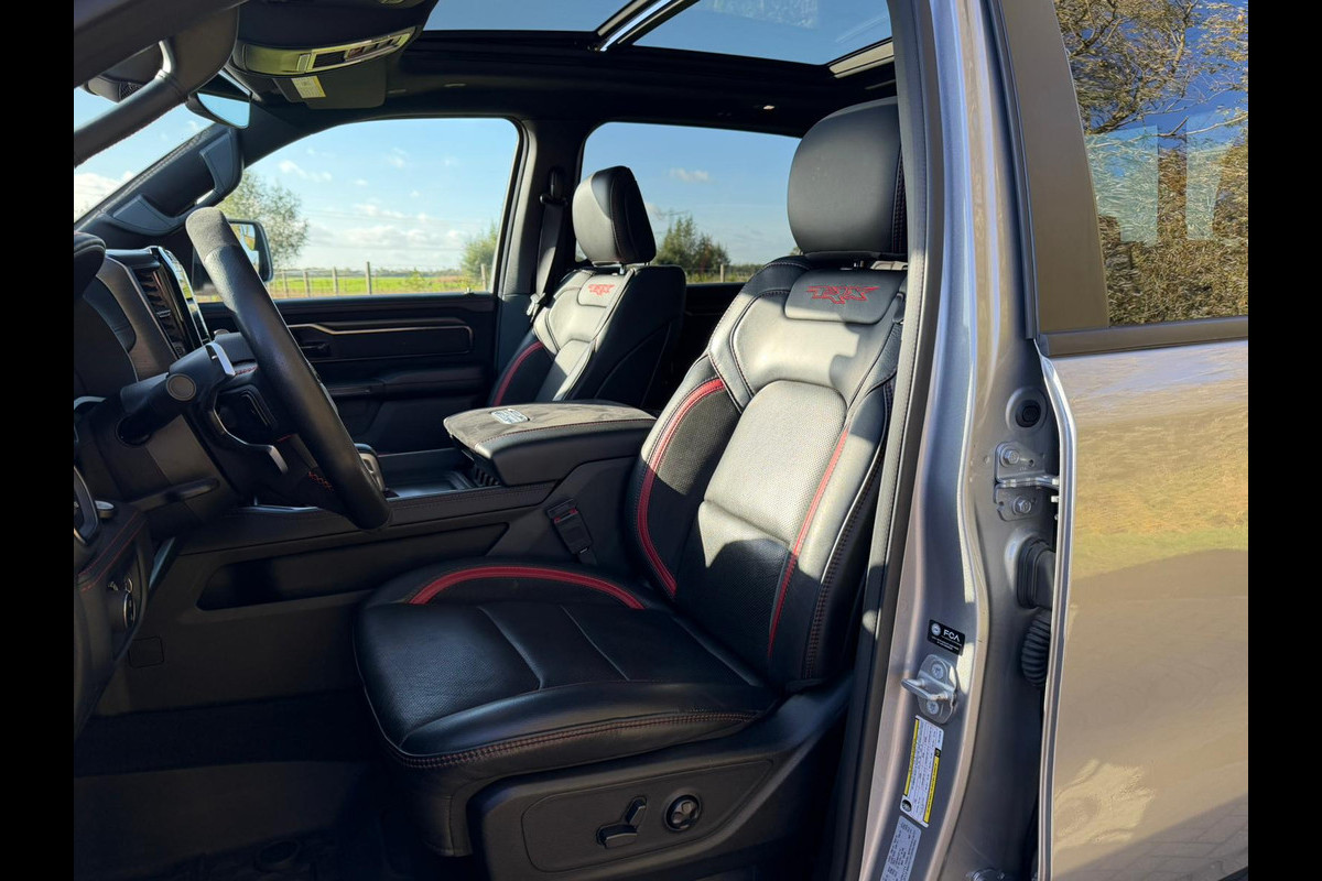 Met een auto als deze Dodge RAM TRX 6.2L Hemi 700PK komt u absoluut goed voor de dag. De krachtige motor geeft deze Dodge uitstekende prestaties. Het gevoel van luxe is inbegrepen dankzij het lederen interieur. U past de stoelen moeiteloos aan, ze zijn elektrisch in te stellen en hebben bovendien een geheugen. Geniet van de lichtinval en het uitzicht van het grote glazen panoramadak. Koude handen? Da's voorbij met het verwarmd stuurwiel. Pak aan! Xenonverlichting zorgt voor een heldere witblauwe lichtkleur en een scherp lichtbeeld. Natuurlijk behoren LED-koplampen, treeplanken, LED-achterlichten, sportuitlaat en LPG-installatie ook tot de uitrusting van deze complete auto.