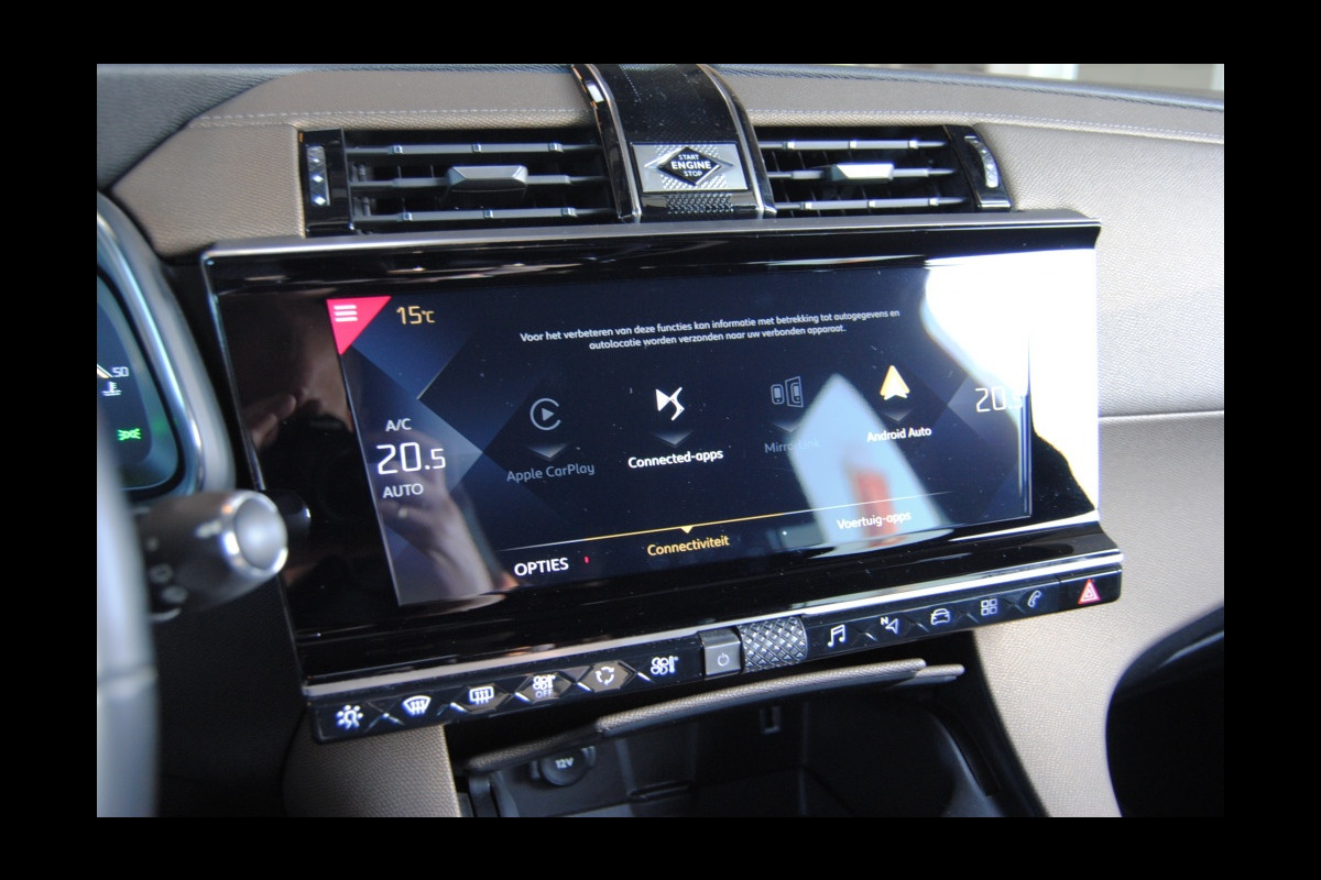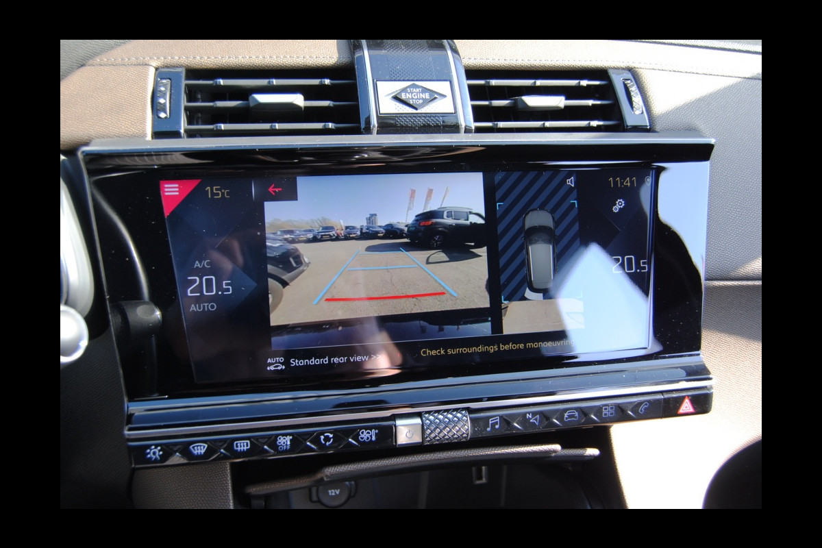 Het gebruik van de 360 graden camera op deze auto zorgt voor een groter gezichtsveld en helpt de dode hoeken te elimineren. Dankzij Connected Services weet u precies waar uw auto geparkeerd staat. Ook andere functies, zoals bandenspanning en brandstofniveau, zijn via de app altijd onder handbereik. Audio-installatiesysteem en navigatiesysteem zijn gecombineerd. Zo wordt zelfs gesproken route-informatie een luisterervaring! En dankzij bluetooth klinkt uw favoriete playlist geweldig. Ook handig is de draadloze telefoonlader. Zonder snoeren en kabels uw smartphone bijtanken! Electronic climate control verwarmt of koelt het interieur met een druk op de knop. U bent in deze Ds ook voorzien van dashboard met spraakbediening, DAB ontvangst, regensensor, cruise control, automatisch dimmende spiegels en lederen stuur.