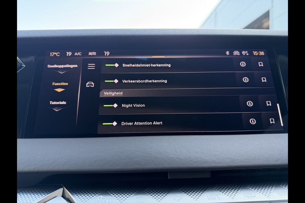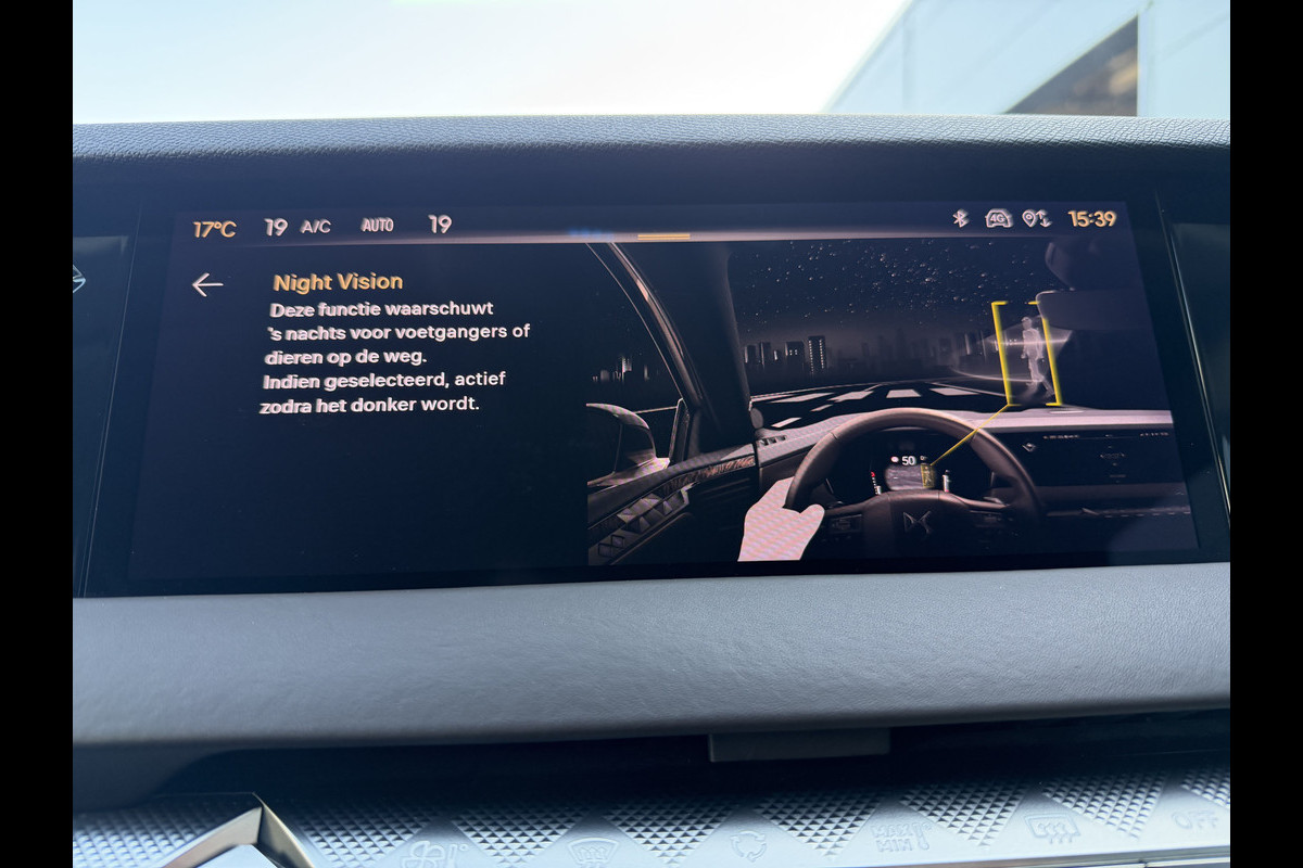 Deze DS is voorzien van verschillende intelligente veiligheidsvoorzieningen. Ze kijken tijdens het rijden als het ware met u mee, ze signaleren potentieel gevaarlijke situaties en in een aantal gevallen kunnen ze ook ingrijpen. U verliest de weg geen seconde uit het oog. De dashboardinfo wordt in uw zichtveld geprojecteerd door de head-up display. Dat de auto steeds meer taken van de bestuurder overneemt, merkt u bijvoorbeeld aan het systeem voor verkeersbord-detectie in deze auto. Keep your lane? Het Lane-keeping systeem zorgt er automatisch voor. Dankzij veiligheidsvoorzieningen als dodehoekdetectie, nachtzichtassistentie, hill hold functie, vermoeidheidsherkenning, autonoom remsysteem en bandenspanningcontrolesysteem, bent u steeds veilig onderweg.