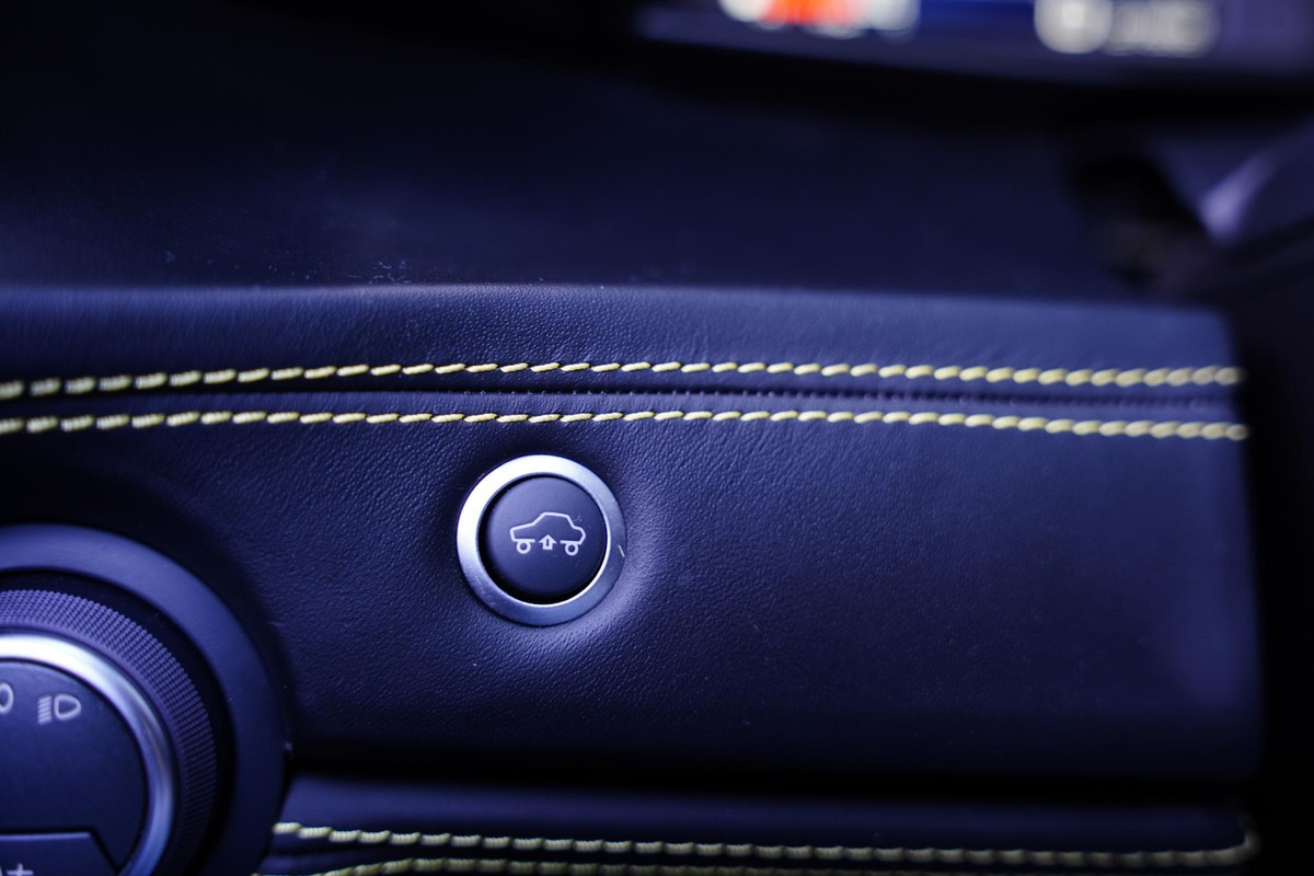 Racing seats with contrasting yellow leather central stripe