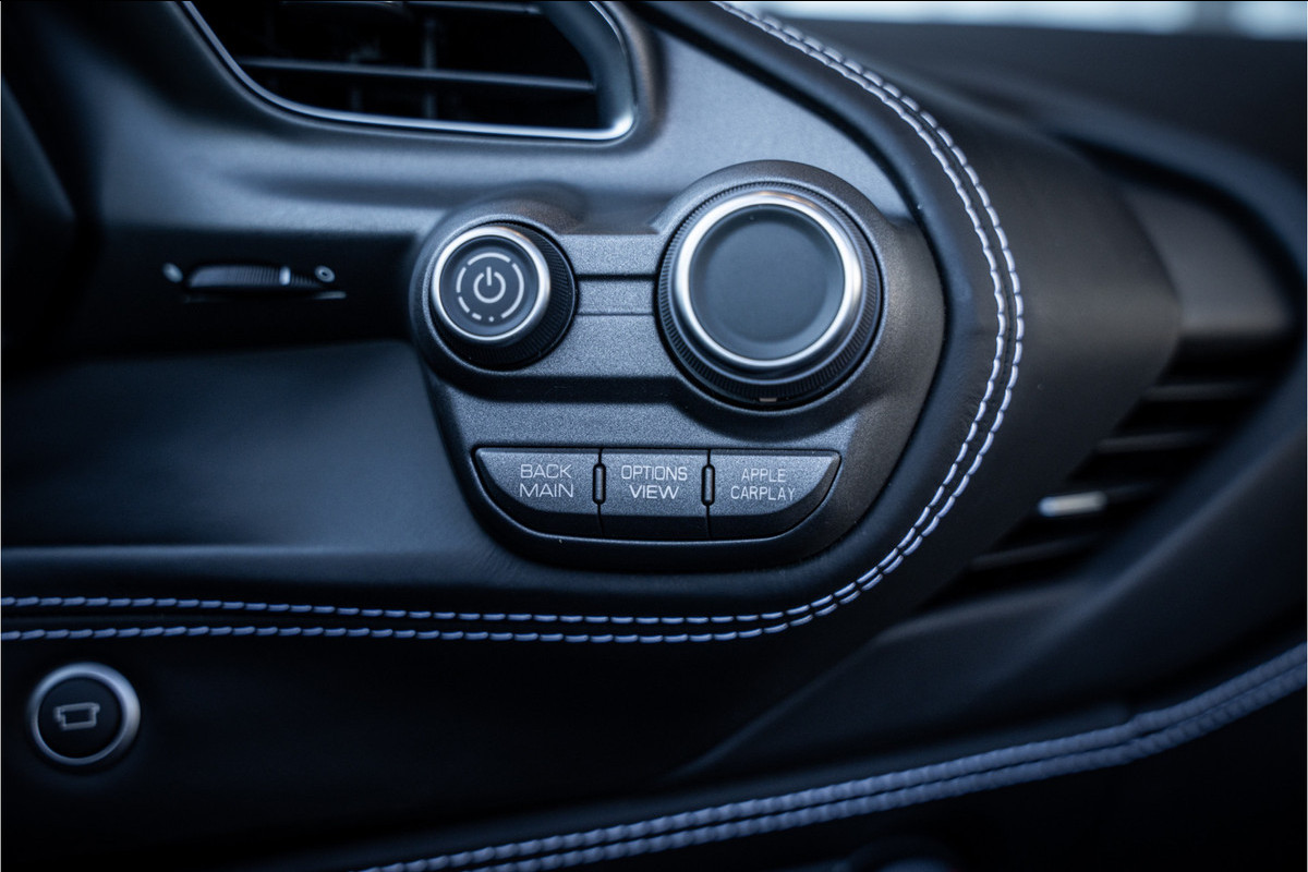 Het exterieur, met zijn vloeiende lijnen en agressieve vormen, benadrukt de dynamiek en elegantie van de Spider. Binnenin wacht een cockpit die volledig op de bestuurder is afgestemd, waar hoogwaardig vakmanschap en moderne technologie elkaar ontmoeten in een omgeving die zowel luxueus als functioneel is.
